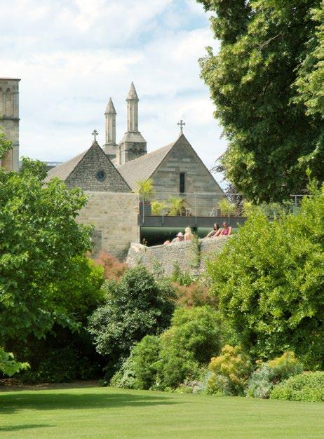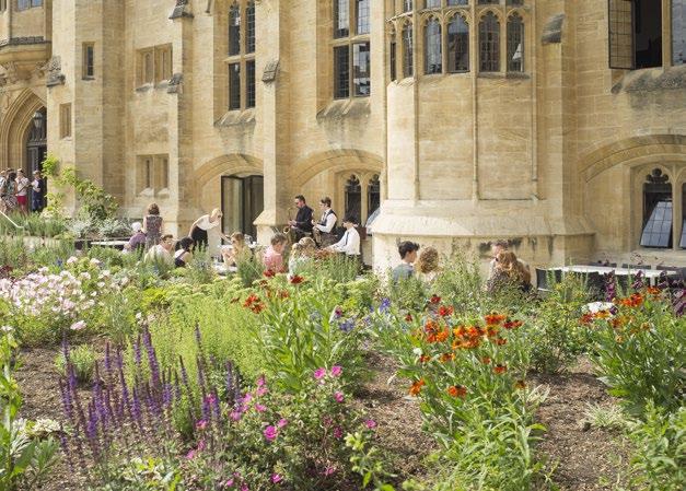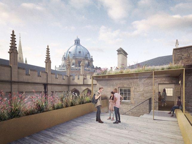 Corpus Christi College gardens were reconfigured as a series of interconnecting courtyards and roof terraces stepping up to a roof garden with wonderful views of Oxford’s dreaming spires