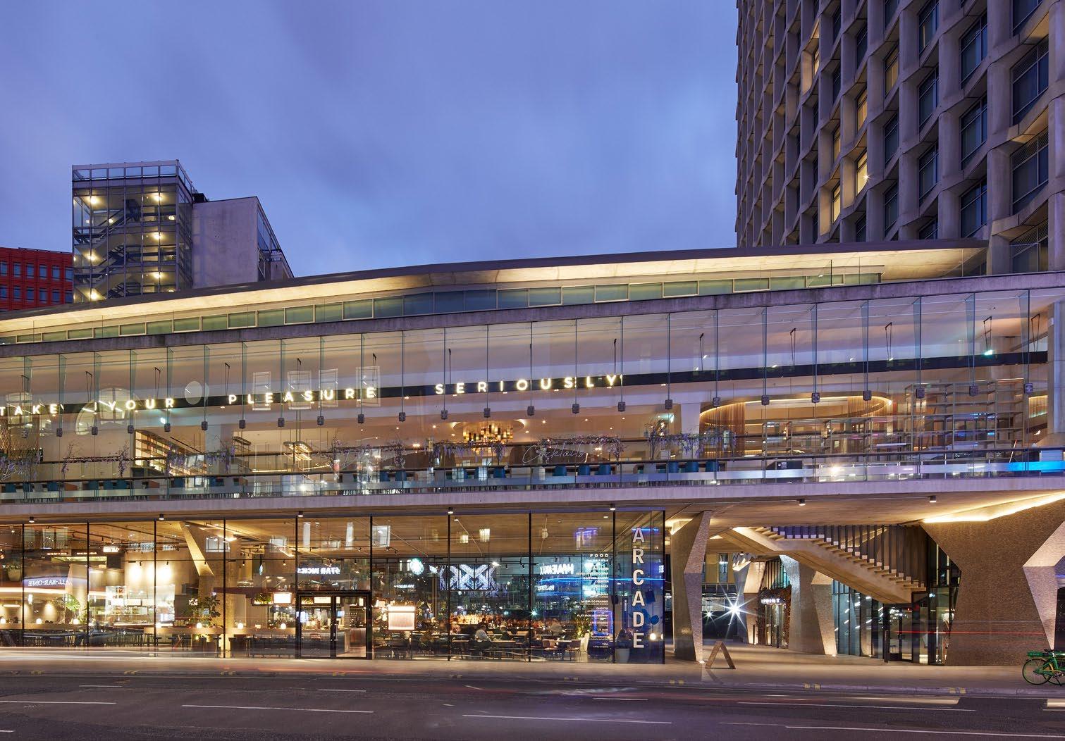 The closure of the road beneath the iconic Listed Centre Point complex has provided a unique opportunity to animate the St Giles area with new spaces for restaurants and shops behind continuous glazed frontages.
