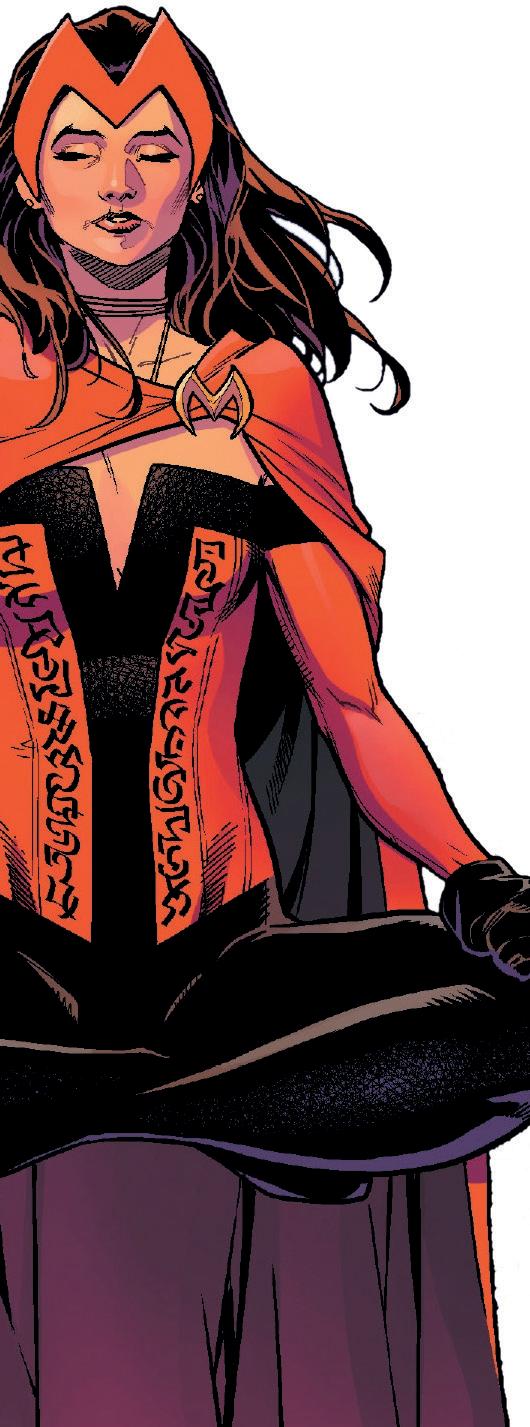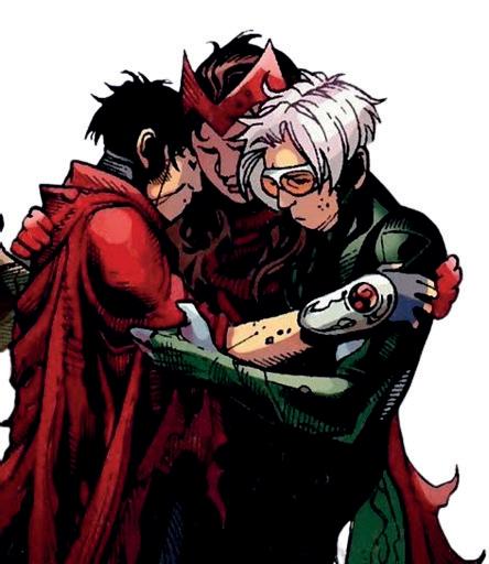 mano gemelo Quicksilver, ambos miembros f undadores de l a Hermandad de M utantes. M ás tarde, se convertiría en miembro r egular d e Los Vengadores. Con el t iempo, contraería ma trimonio con s u compañero de equipo llamado Visión. El perso naje p osee h abilidades p ara alterar la r ealidad d e formas no especificadas.