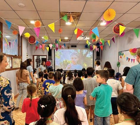 Above: Leaders join particpants and their families to play games during a Conversational English Class.