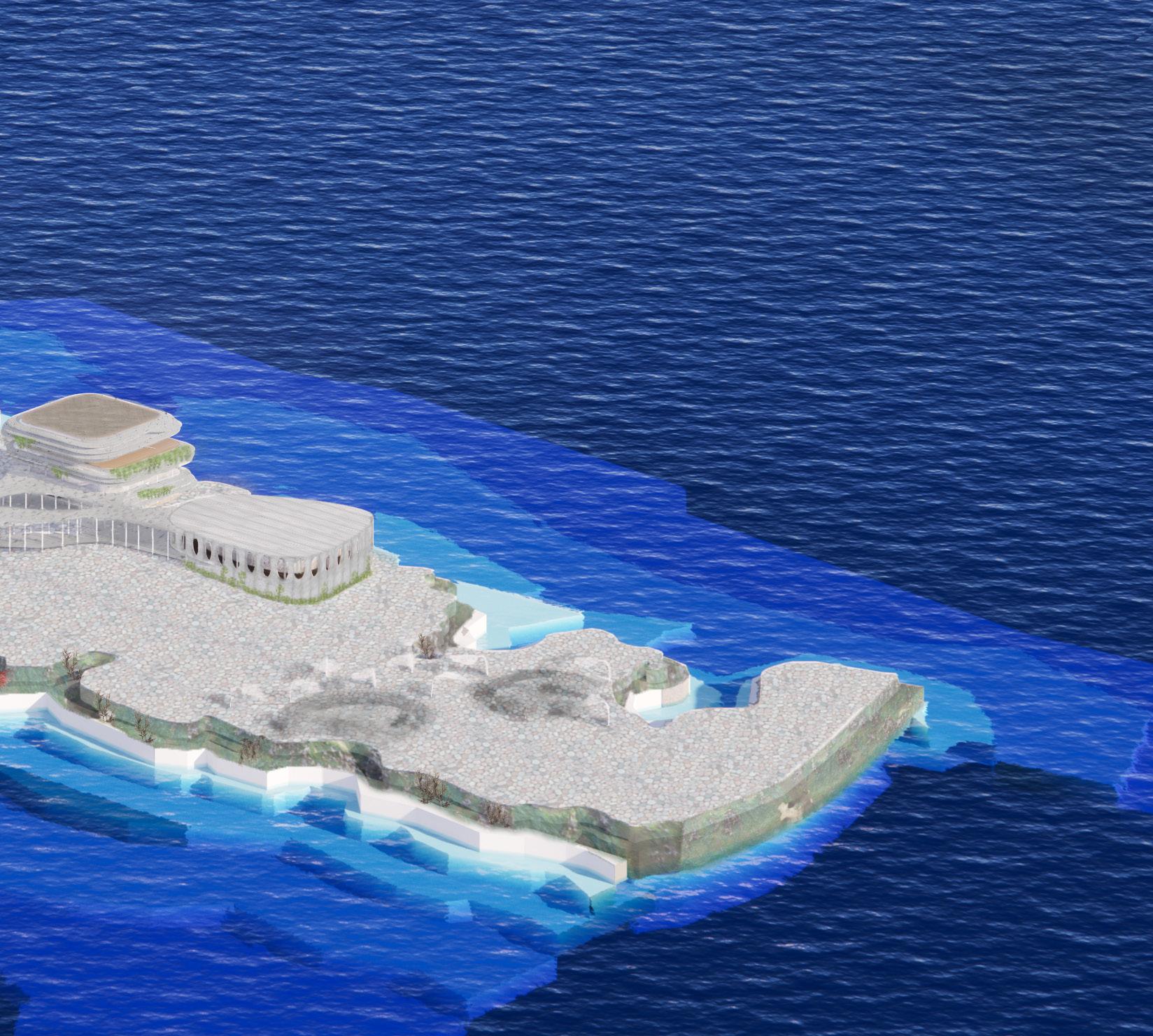 In designing for the 2024 Americas Cup Race we observed the current coastline of Catalonia and the distinct contrast between its natural and artificial sections. The natural provide a vital permeability whereas artificial segments tend to lack organicity. Our solution is to combine them through a permeable urban beach by bringing the elements of a coral reef from below to the surface. It promotes the importance of coastal ecosystems, sustainable architectural practices and, pave a path for modern coastal development.