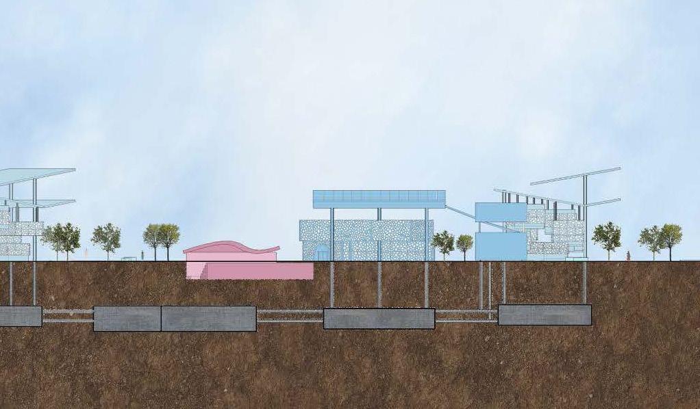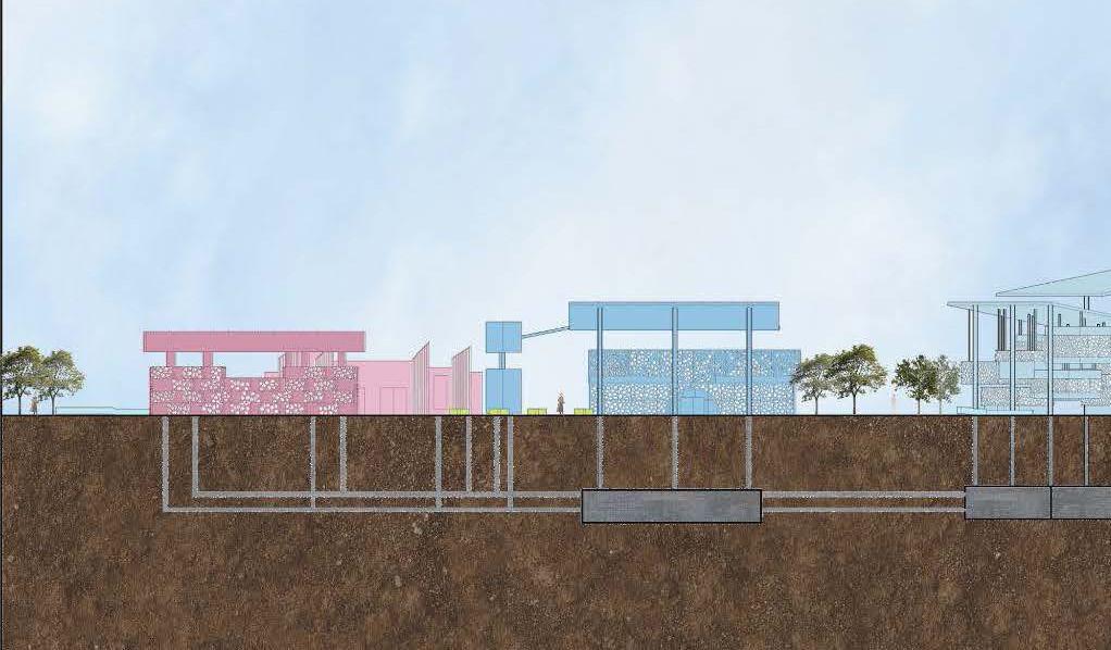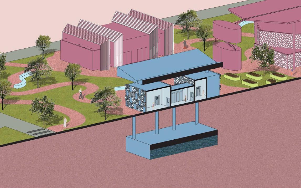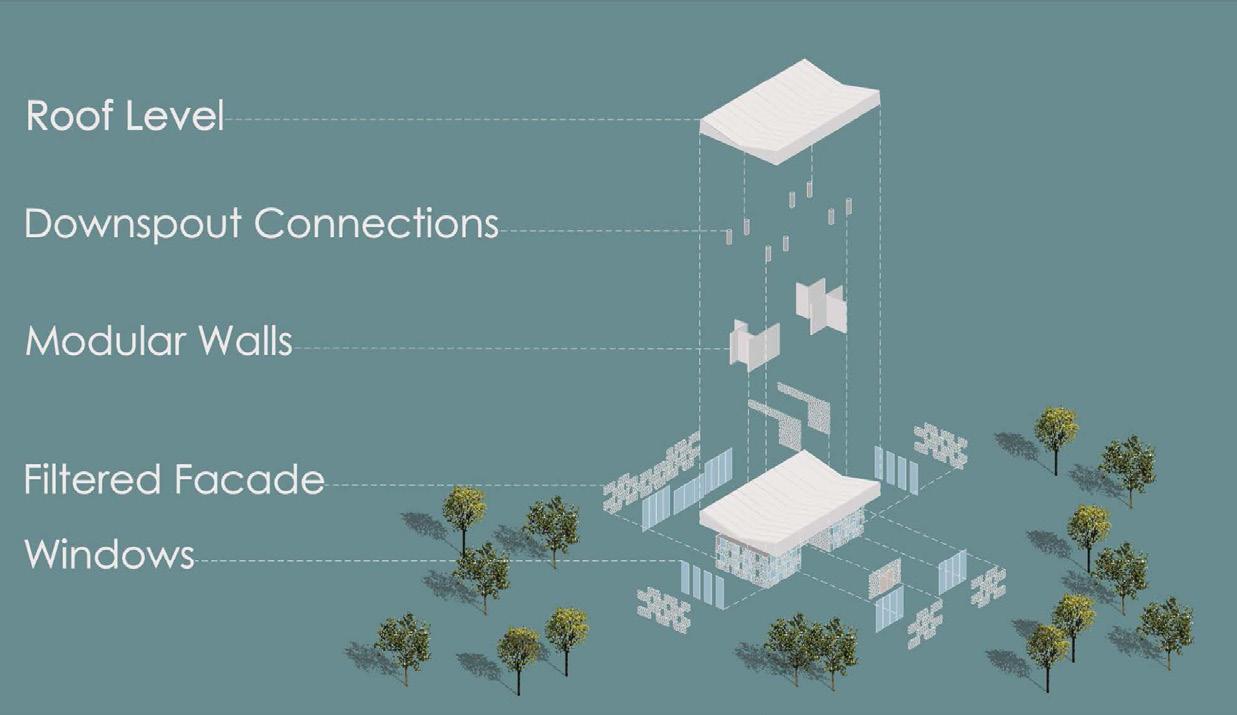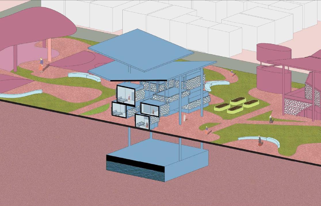 This project was focused on designing a solution to the air, water, and heat issues in the Houston area. From the neighborhoods that were directly affected by large industry pollution, we chose an empty lot in the Greater 5th Ward. This systematic way of living serves permanence and urgency while displaying self-sustaining properties with a series of shelters, resorvoirs, cisterns, a clinic, an education facility, and outdoor entertainment.