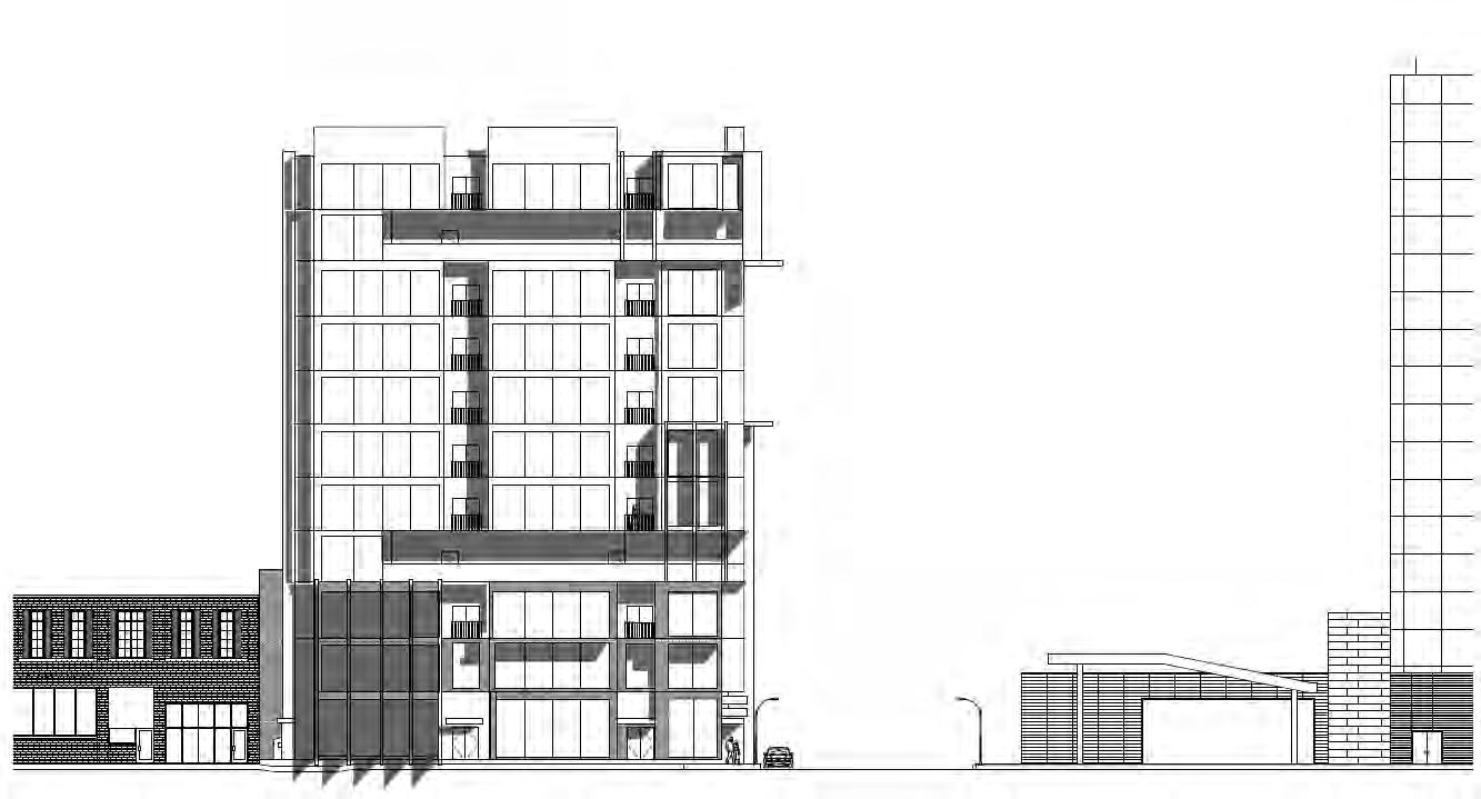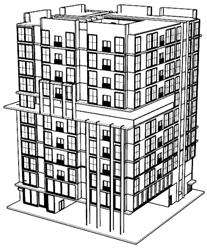 The Stack is a configuration of square-like levels that divides the structure into a public retail space and a residential space. It was designed with lowincome tenants in mind to respond to the rise in Memphis' poverty rate, and provides a sense of greenery and community that downtown Memphis lacks.