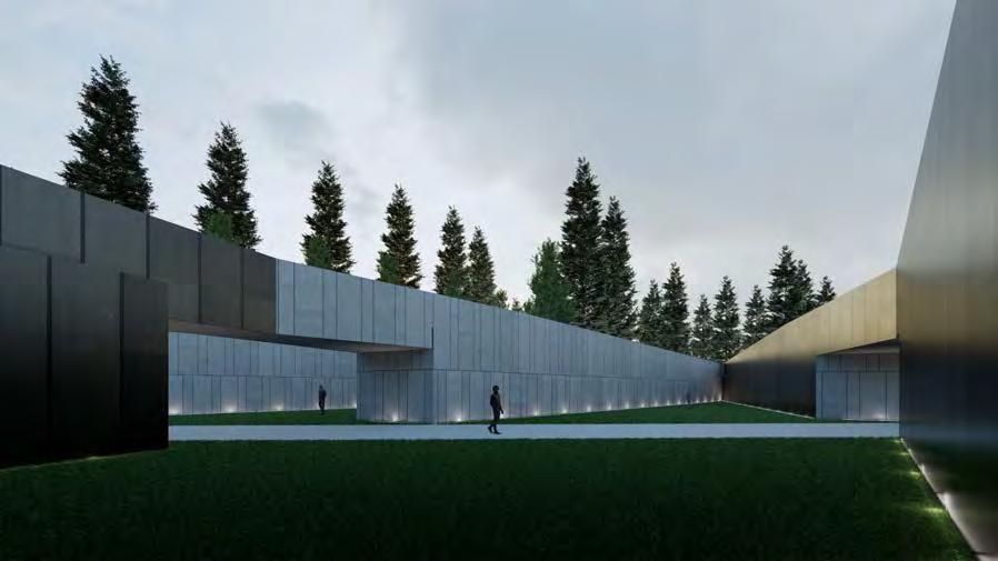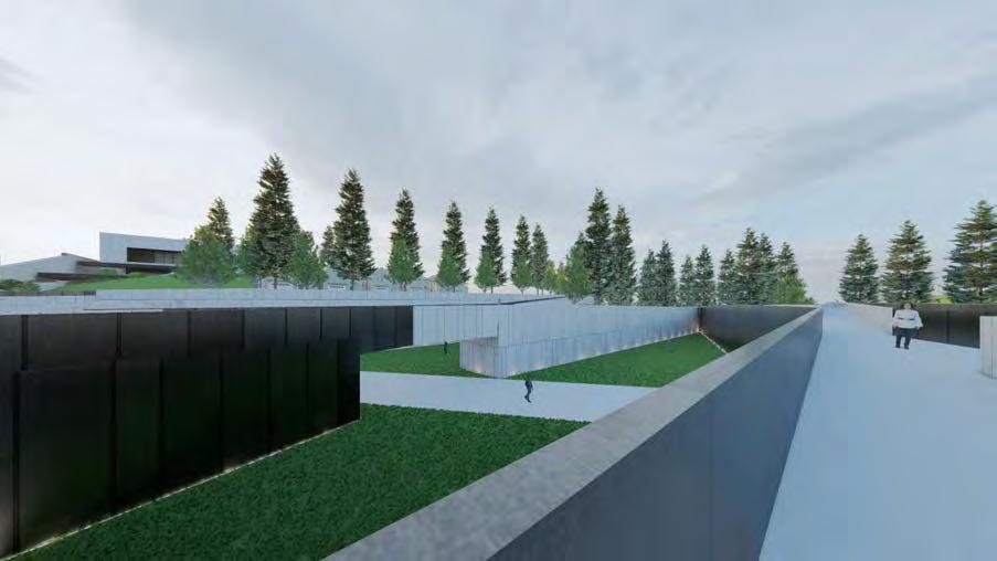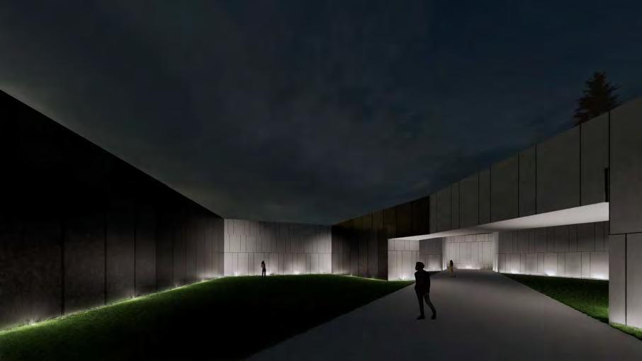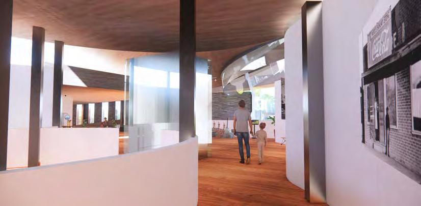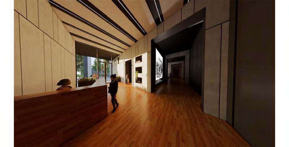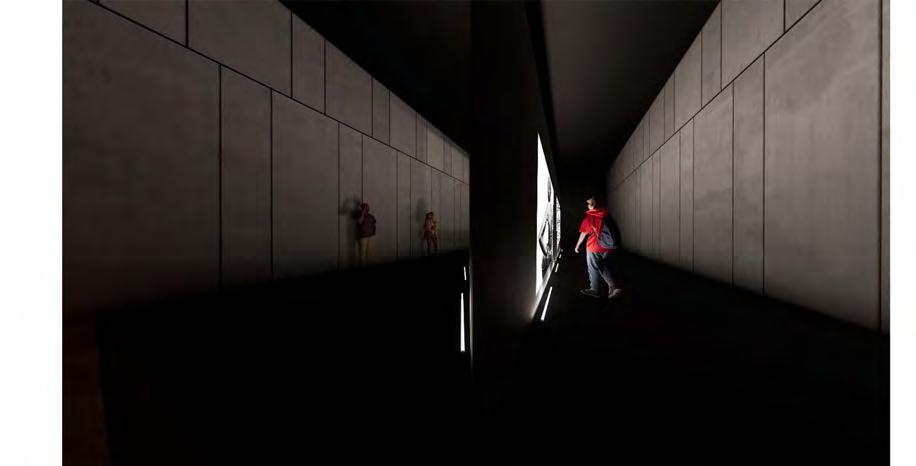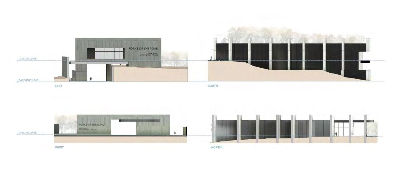 This design focuses on educating the public about the stories of slavery through an indoor interpretive learning museum and a reflective outdoor memorial space. There is a historic house serving as a cafe, research center, and gift shop, and there are a variety of public outdoors spaces. Every single aspect of the design correlates back to a key feature of the Forks of the Road.