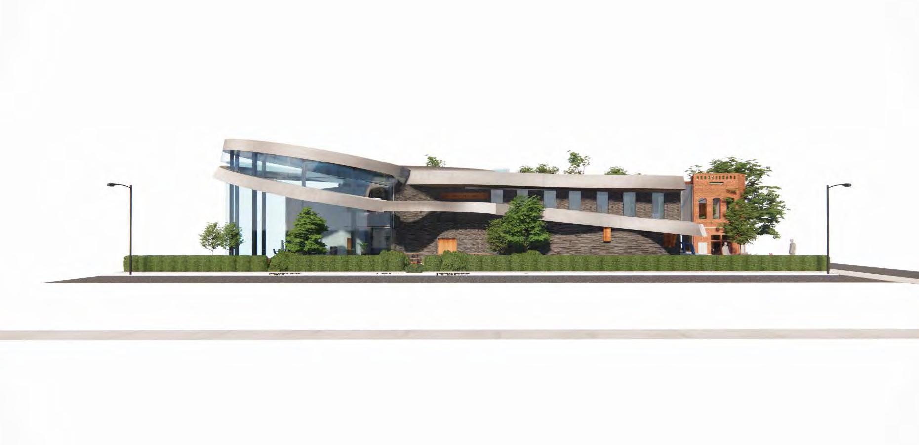 The purpose of the design was to completely contrast the addition to the existing bank building without overshadowing it, as a nod to changing the past without forgetting the lessons it gave us.