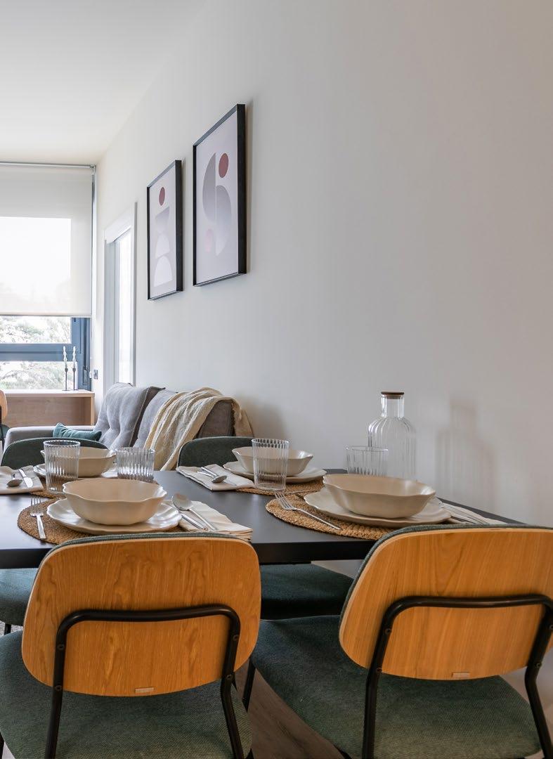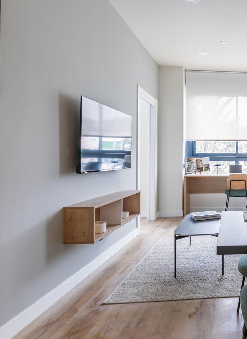 Habitaciones amplias, baños modernos, salones espaciosos y cocinas completamente equipadas. Una casa grande, cómoda, luminosa y nueva. En definitiva, un espacio privado adaptado a tus necesidades diarias. En nuestros apartamentos de Tres Cantos todo está pensado para que vivas una experiencia de flex living incomparable.