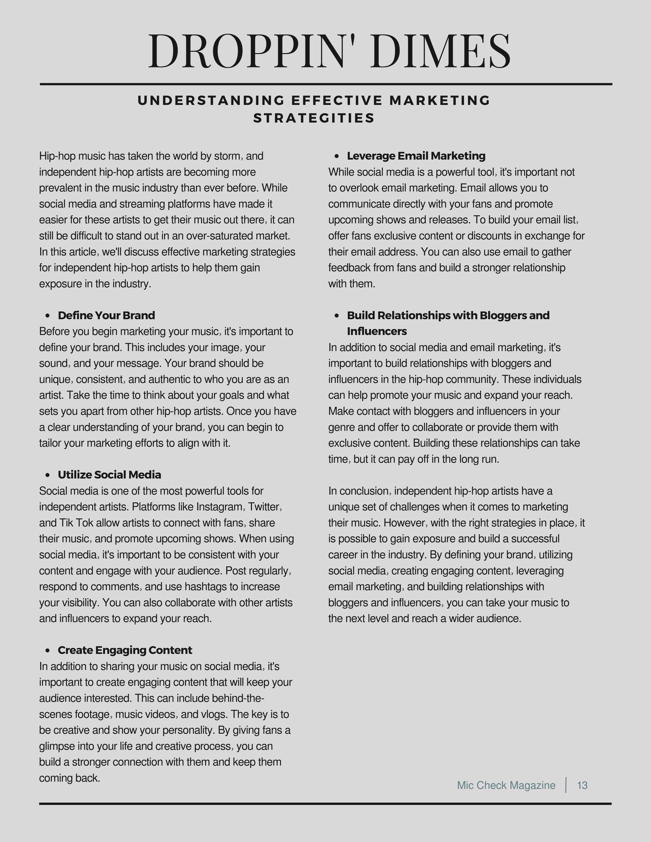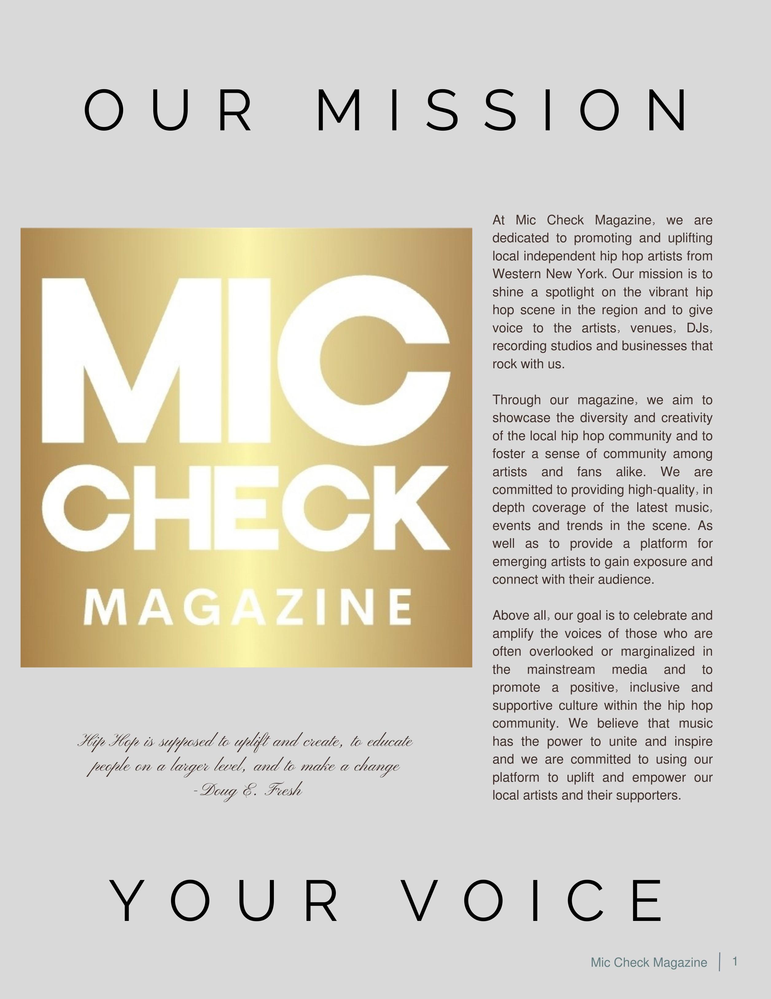 Mic Check Magazine is dedicated to shining a light on talented individuals in the independent music industry, who may not get a chance otherwise. We support artists, businesses, venues, and studios that promote and help grow our communities. Our dedication is unmatched and we will continue to put out the best quality as we ourselves grow and learn from this process. Your support is appreciated.