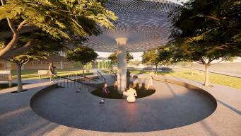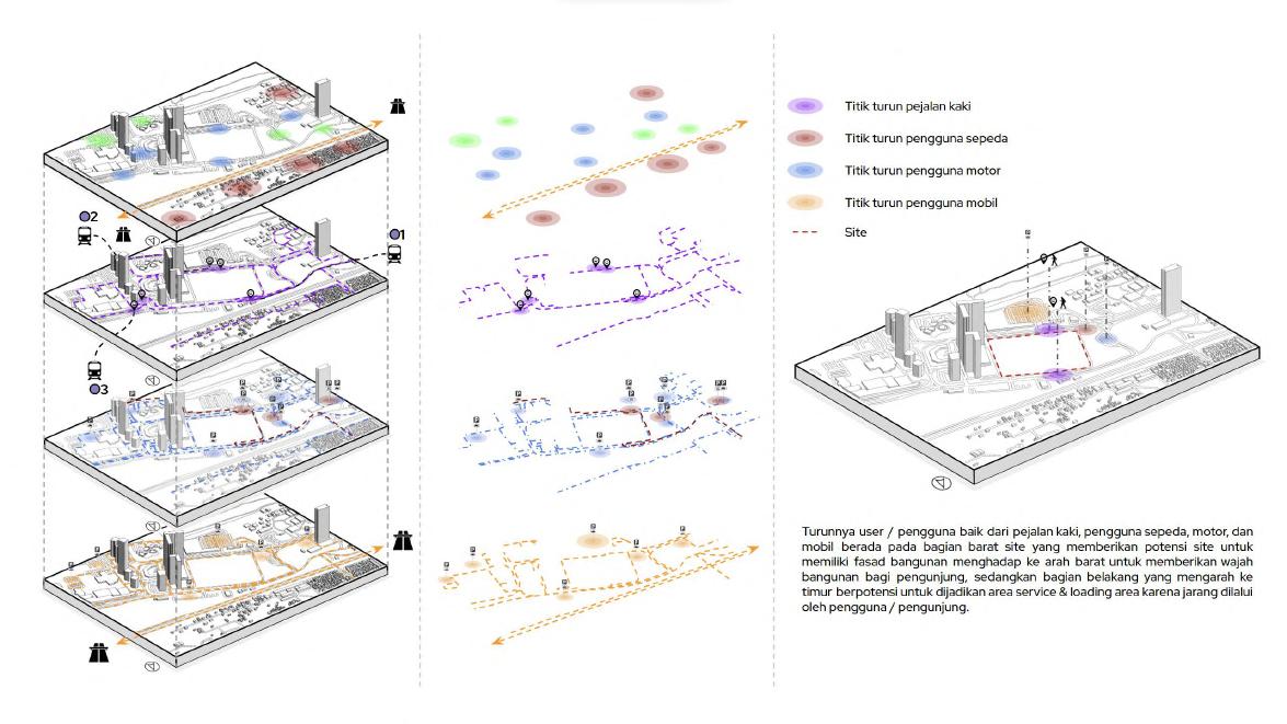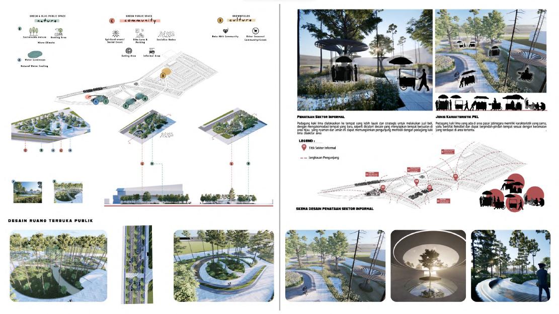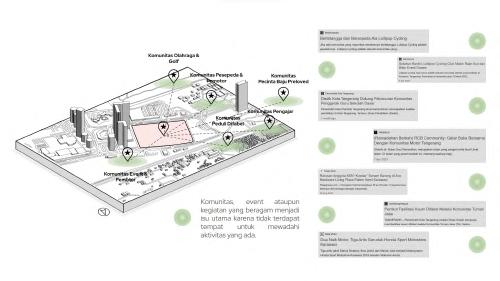 Dari kelima fungsi tersebut saling terhubung satu sama lain dengan pendukung utamanya adalah taman yang terdapat pada 3 titik utama.