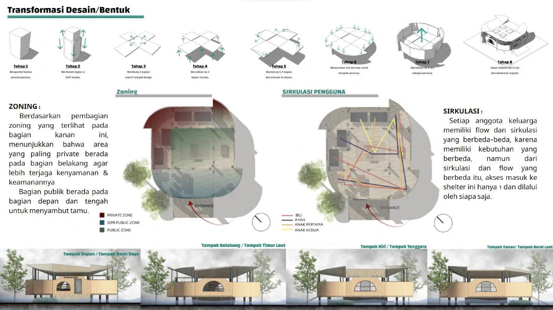 Dengan bentuk seperti bunga yang mekar, dapat degan mudah untuk dirakit dan disatukan kembali, sehingga tidak perlu waktu lama akan dengan cepat bisa ditinggali.