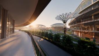 Pusat Perbelanjaan yang ramah keluarga. Bangunan yang dibangun berdasarkan standar bangunan hijau yang merespons ke Passive cooling design.