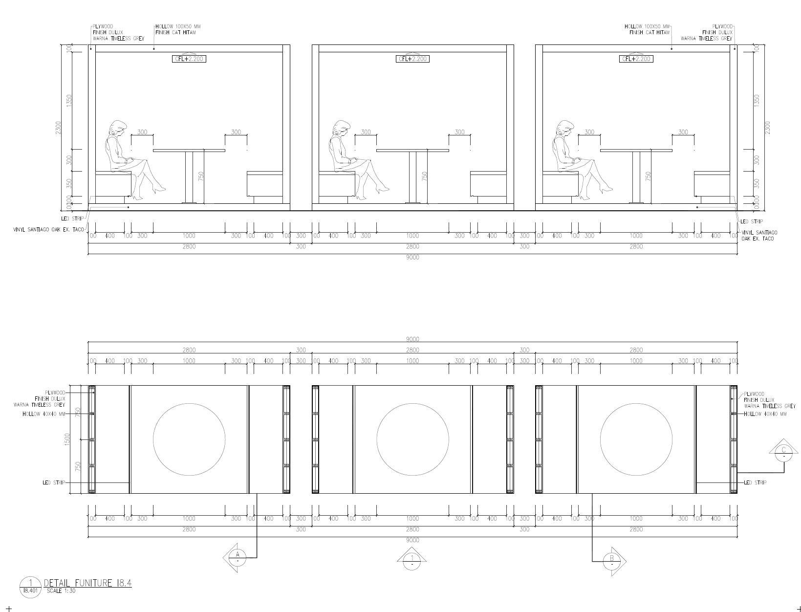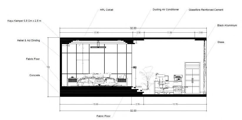 dengan kondisi eksisting tersebut, saya membedakan level ruangan agar terlihat kesan pembagian tempat kerja dan tempat istirahat.