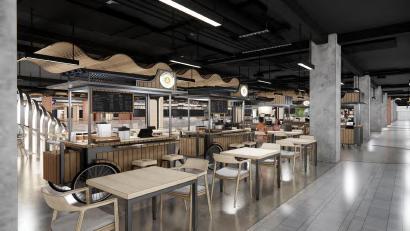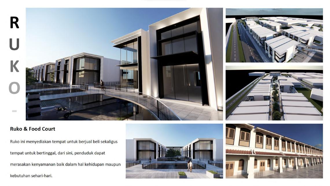 Food Court & Housing (RUKO) berada pada bagian seberang fungsi bangunan Hotel yang selain memberikan tempat tinggal bagi penduduk sekitar, dapat juga memberikan kesempatan bagi penduduk untuk melakukan jual beli barang-barang yang akan di jual.