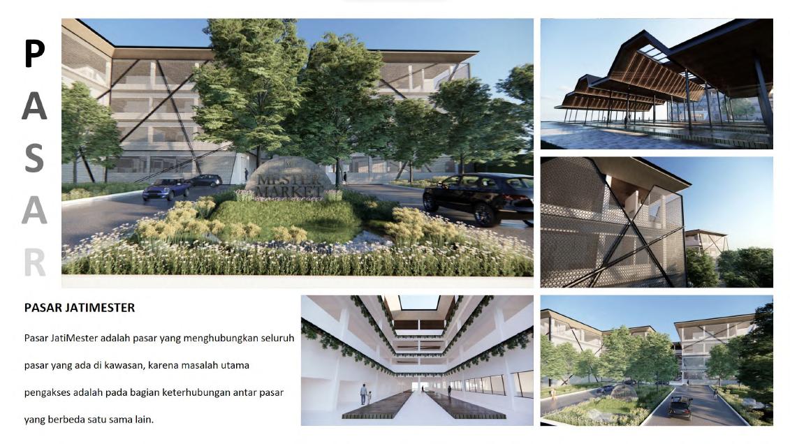 Pasar Jatimester yang berada di bagian tengah lokasi perancangan dapat menarik perhatian pengunjung karena bangunan ini merupakan pusat dari seluruh bagian perancangan.