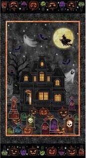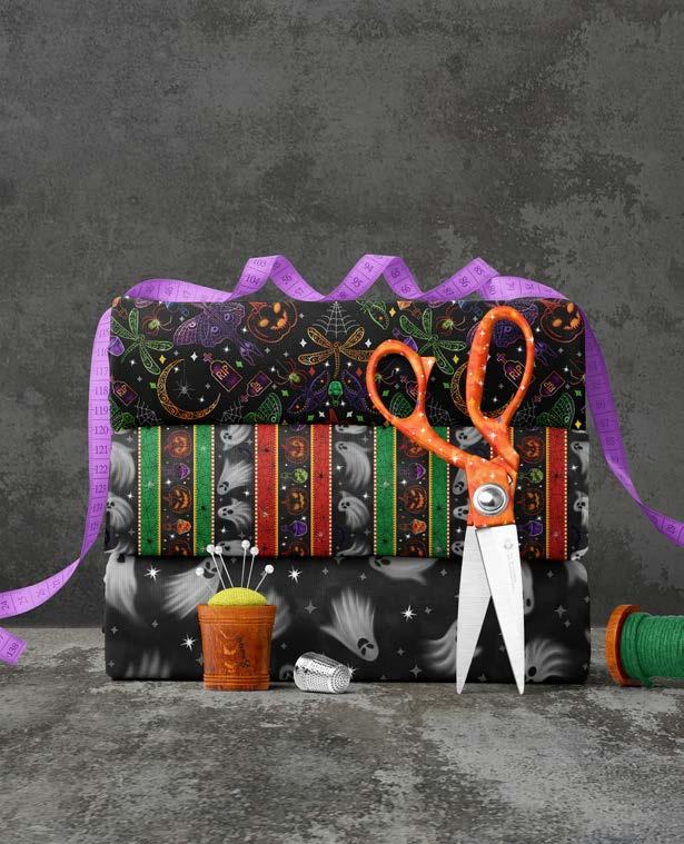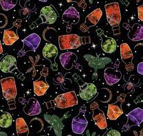 Dare to enter Nightmare at Halloween, a spine-tingling collection of wickedly fun print fabrics! Cackling witches stir bubbling cauldrons beneath gnarled, spooky trees, while flocks of screeching bats dance across moonlit skies. Haunted houses loom in eerie silence, their windows aglow with ghostly light, as creepy-faced pumpkins grin from shadowy corners. Each fabric tells a tale from the haunted night, printed with screams and style. Whether you’re crafting costumes, quilts, or chilling décor, these prints will cast a delightful spell on every project. Beware… once you touch them, you might never sleep again. Happy haunting—if you dare!