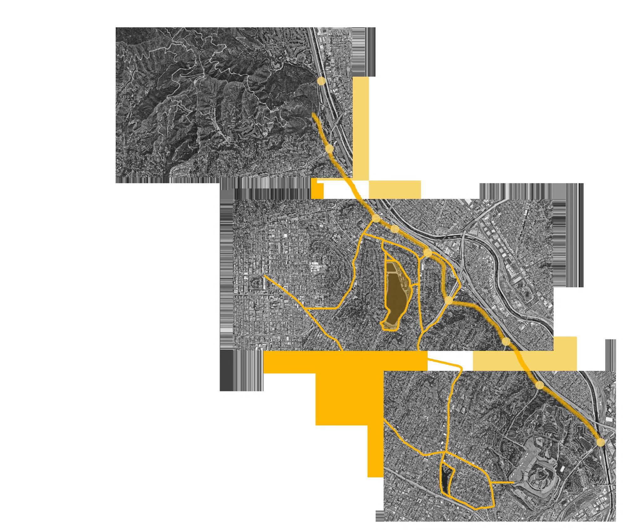 Green corridors were created to connect six significant parks in a three mile radius around the Silver Lake Reservoir. The streets selected for redesign were high usage streets that connect to each other to provide a network to get to all of the parks efficiently. For the corridors we established active transportation by making walkways and bikeways safer by establishing vegetative barriers. Also, these barriers help combat some climate change issues in the area by establishing large street trees that provide shade and increase air quality. Furthermore, the vegetation will provide a habitat that can lead to ecosystem development along the streets for insects, birds, and small mammals. We would like to propose a potential ecological corridor that could connect current trails and empty greenspaces together to provide a safe route for local wildlife to travel.