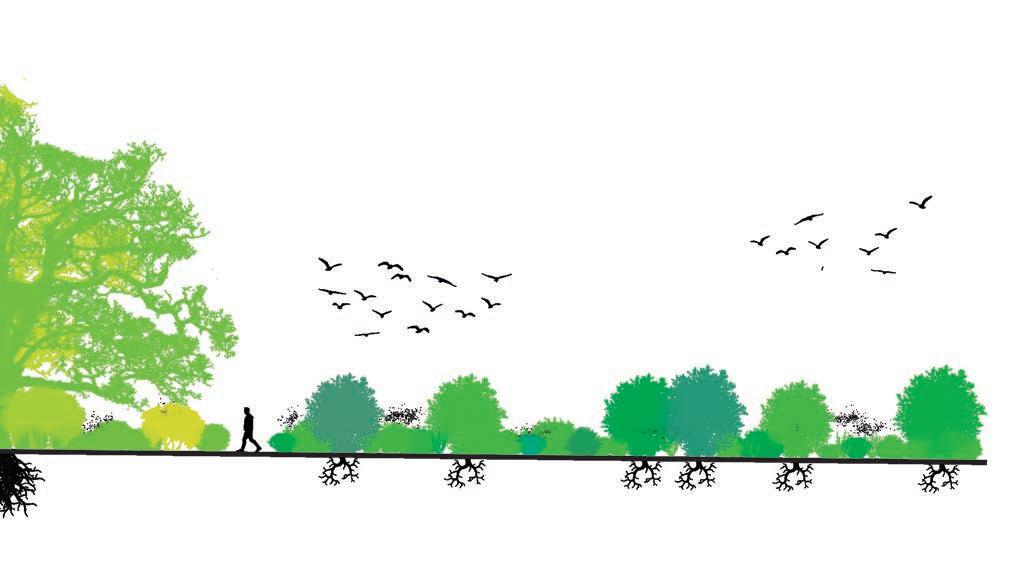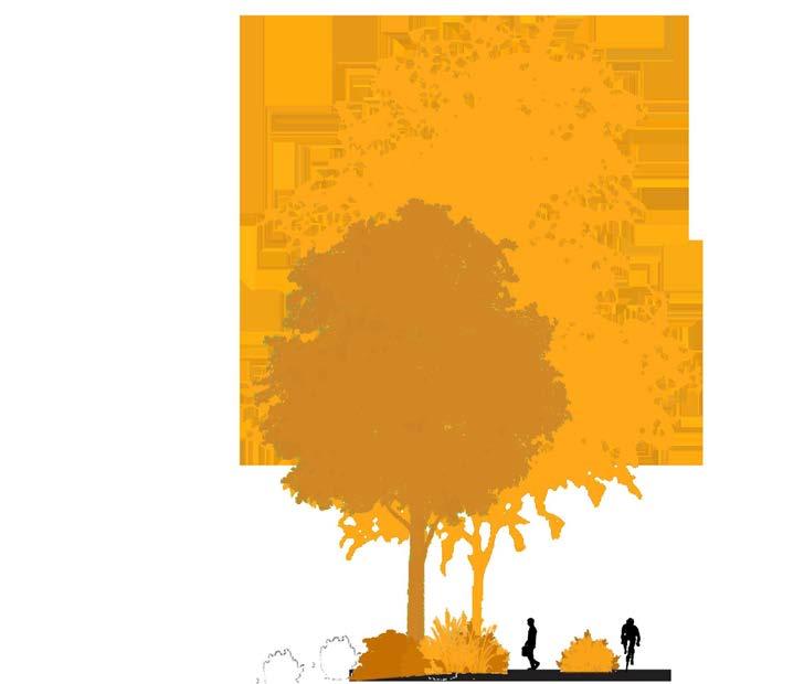 The green corridors planted will be native vegetation that provides both the benefits of shade and improvement of air quality. In addition, establishing an ecosystem for native wildlife to thrive and travel between the different parks.