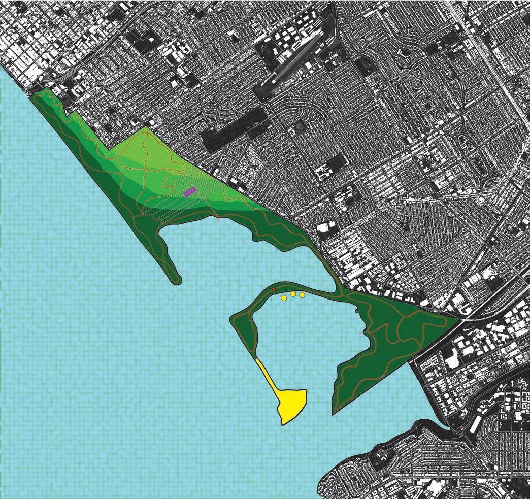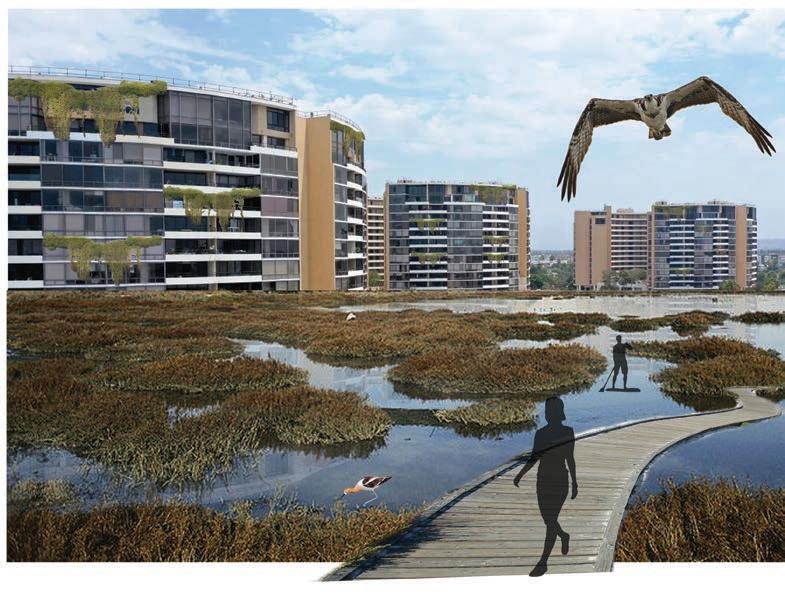This takes place in the year 2100 where sea level rise has taken a toll on California shorelines, especially the Venice area. This project reimagines what the Venice area would look like with ten feet of sea level rise. In place of all the infrastructure that has been removed is an ecological reserve that creates an open space for humans as well as local wildlife.