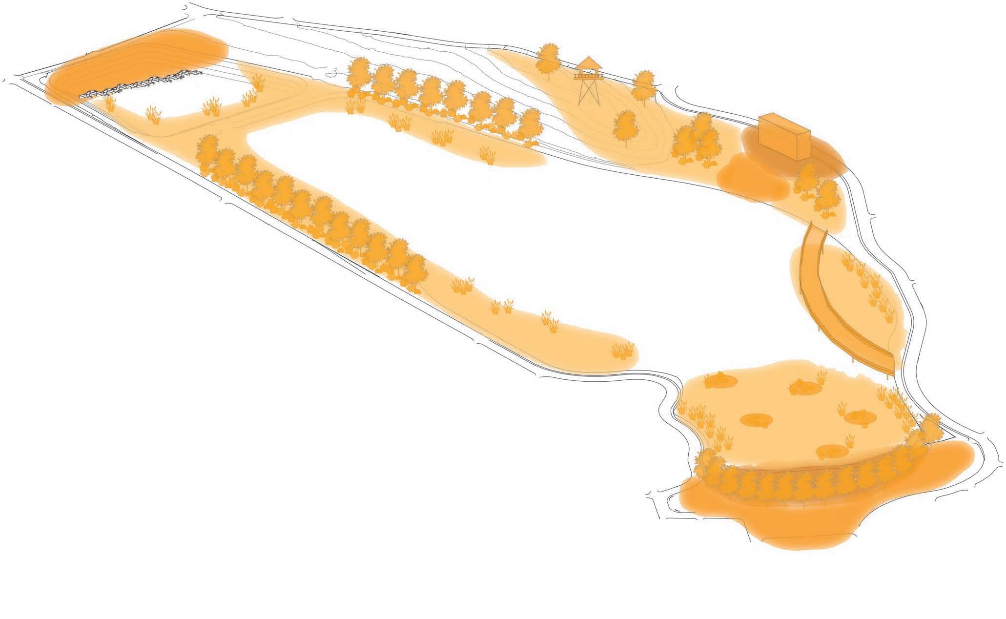 At the reservoir we focused on ecology in two different ways. The first way was naturalizing different parts of the resevoir’s banks to allow for wetlands and riparian zones. The second way was to provide diverse habitats for wildlife through a bird sanctuary, floating islands, a native grove, and woodland chaparral.