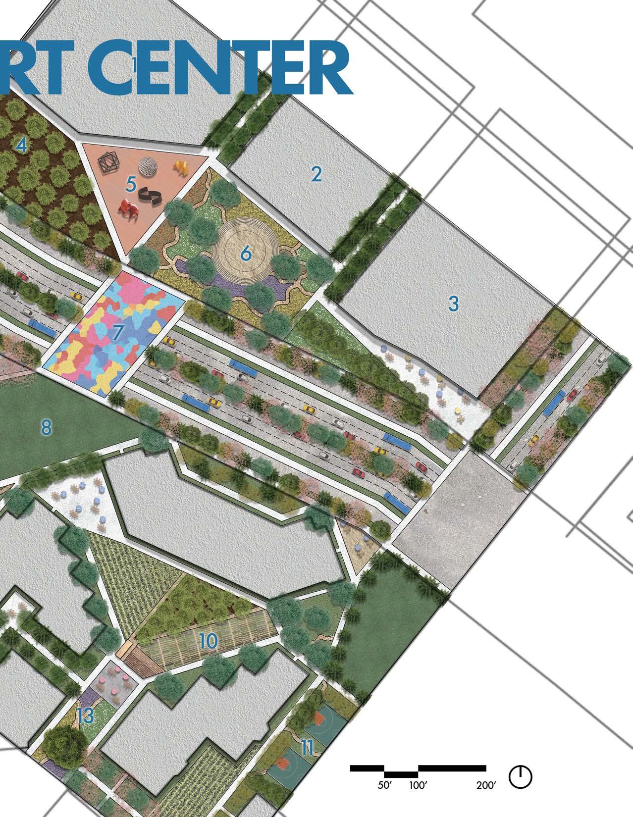 For the larger streets such as Glendale and Sunset Blvd., we eliminated a driving lane to extend the sidewalk and greenways. In these extensions there will be areas provided for seating so users can take a break and enjoy the surrounding plants. Also, the street median that runs across Glendale Blvd. has been remodeled to provide another walking path.