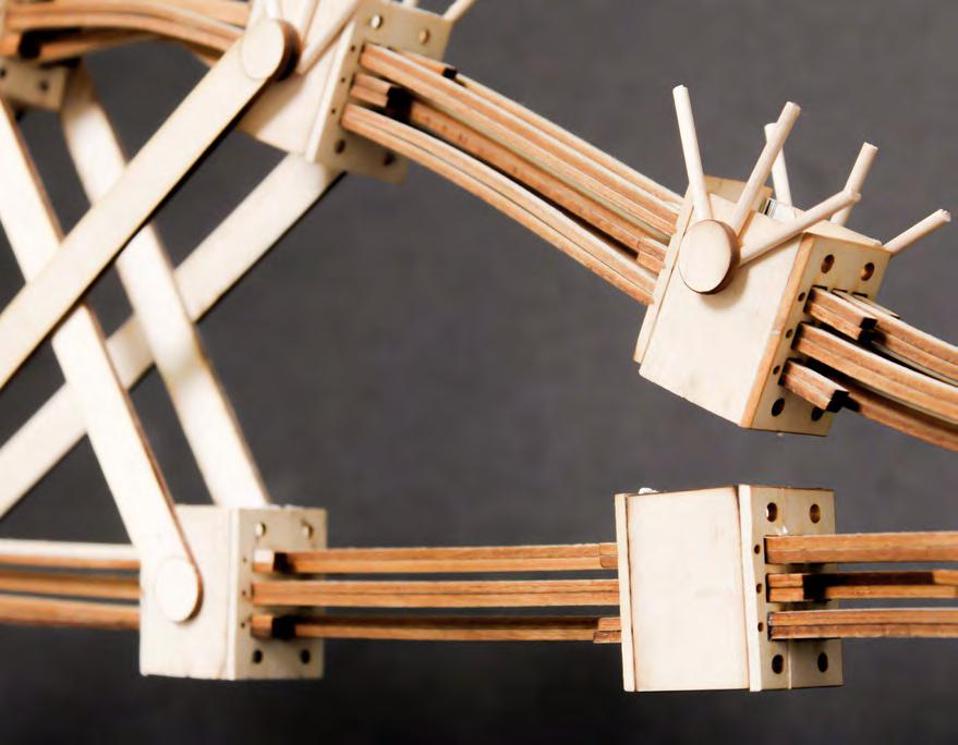 The thesis of this technology studio aimed to create a proposed system for a tectonic timber assembly through processes of digital prototyping and creation of a part-to-whole system. The project aims to study double-curved surfaces in wood through prestressing. The end goal is a tectonic assembly method that resembles the lightweight structure of bamboo.