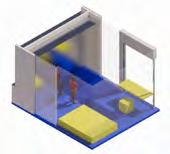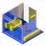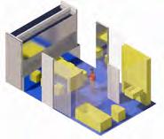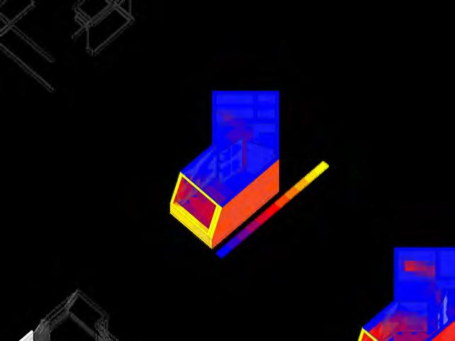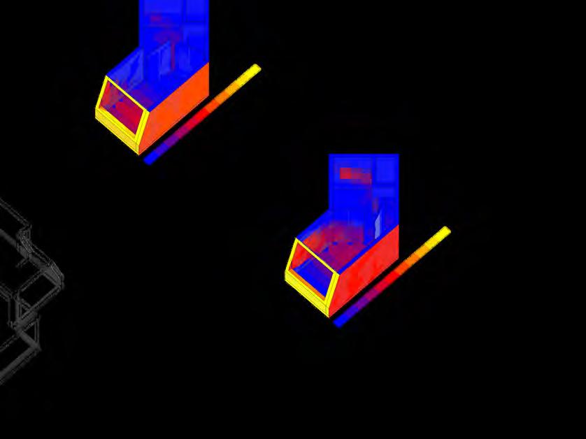 The particles were introduced from the central elevator axis in both buildings and were collided with collision objects that split them up, allowing for access to different areas. This simulation serves as a guide to our spatial decision strategy.