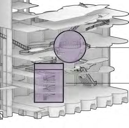 The final circulation allows for meandering movement and multiple options, with a motive to move and a tease to draw viewers to other visible locations. This is achieved through the use of contrasting light and dark spaces, glass, and transparency to showcase different views and areas of the building.