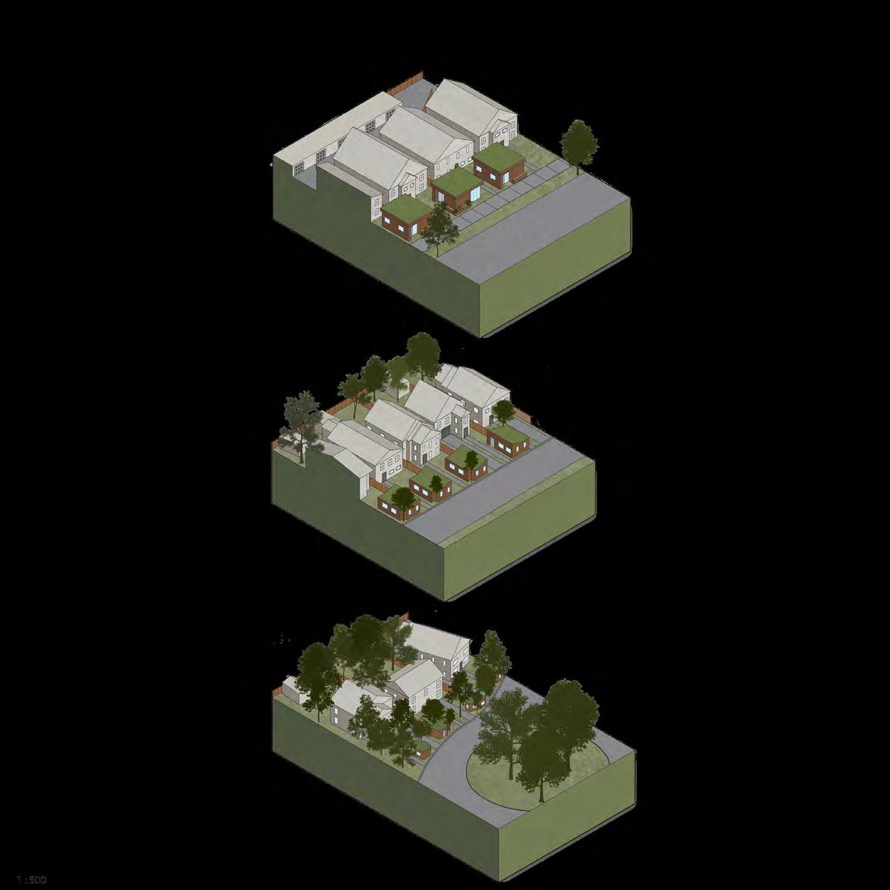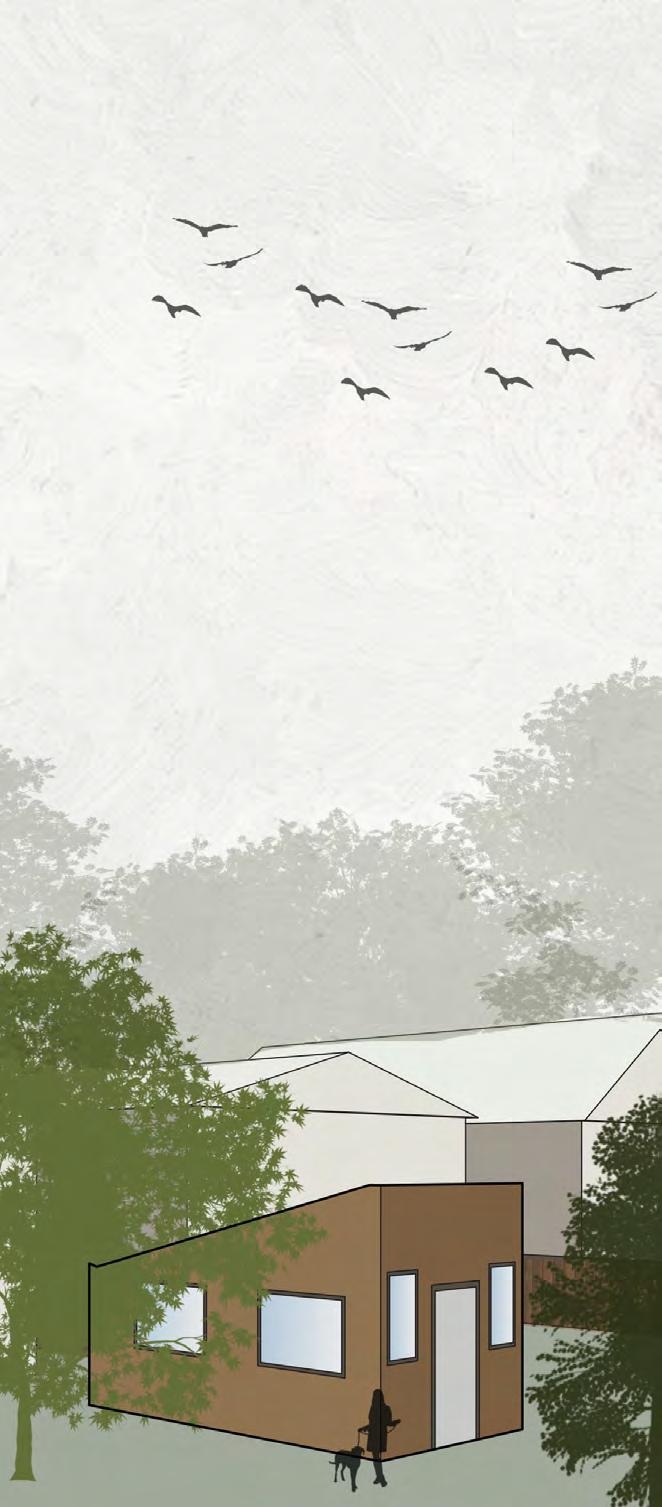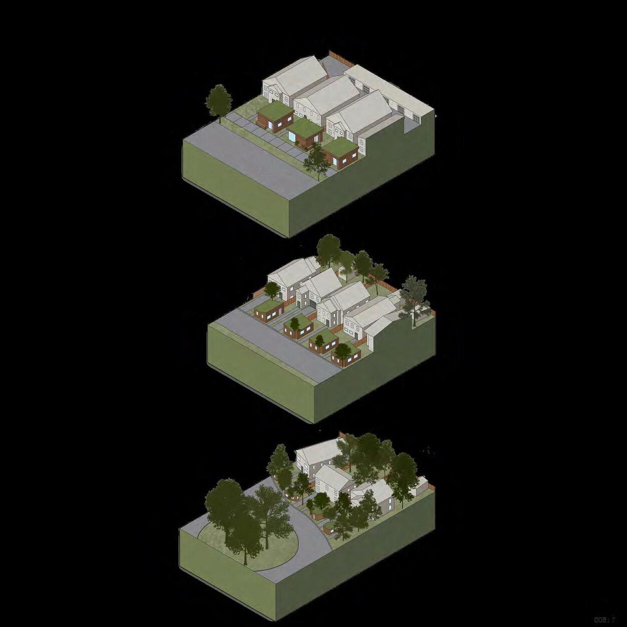 The typology employed in this study is contingent upon the extent of tree coverage, ensuring a sensitive integration of ADU’s into the natural landscape. Three distinct categories of dwelling units have been devised, each responding to its specific environmental conditions. As the proportion of trees increases, the placement of the units harmonizes with the surroundings, thereby mitigating their impact on the delicate ravine ecosystem.