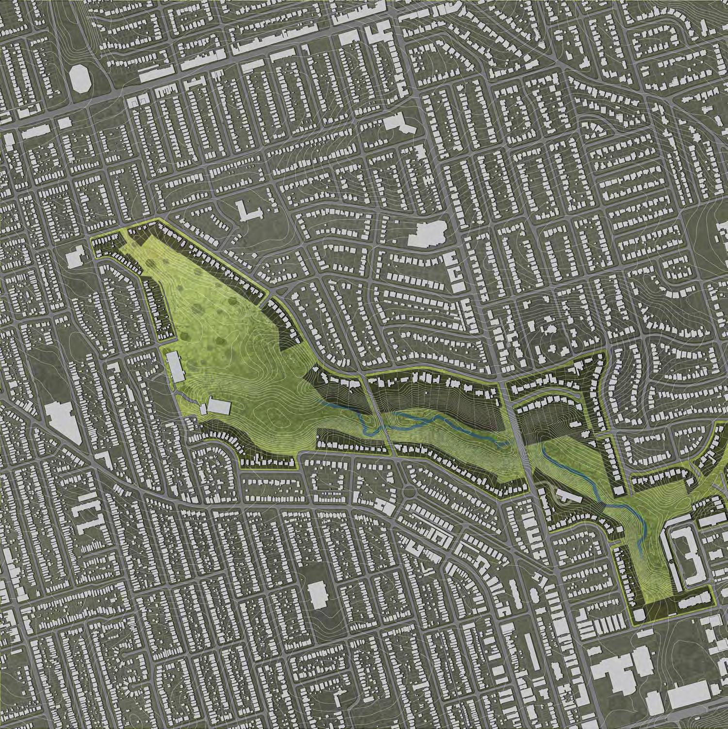 This project examines the Connaught Circle neighborhood, located in close proximity to Cedarvale Ravine in Toronto. The prospective design intervention explores potential locations for additional housing units, carefully considering the tree density within the ravine, ranging from 0% to 100%.