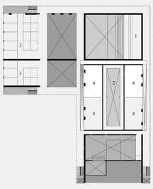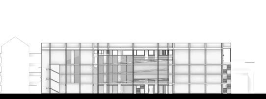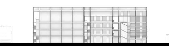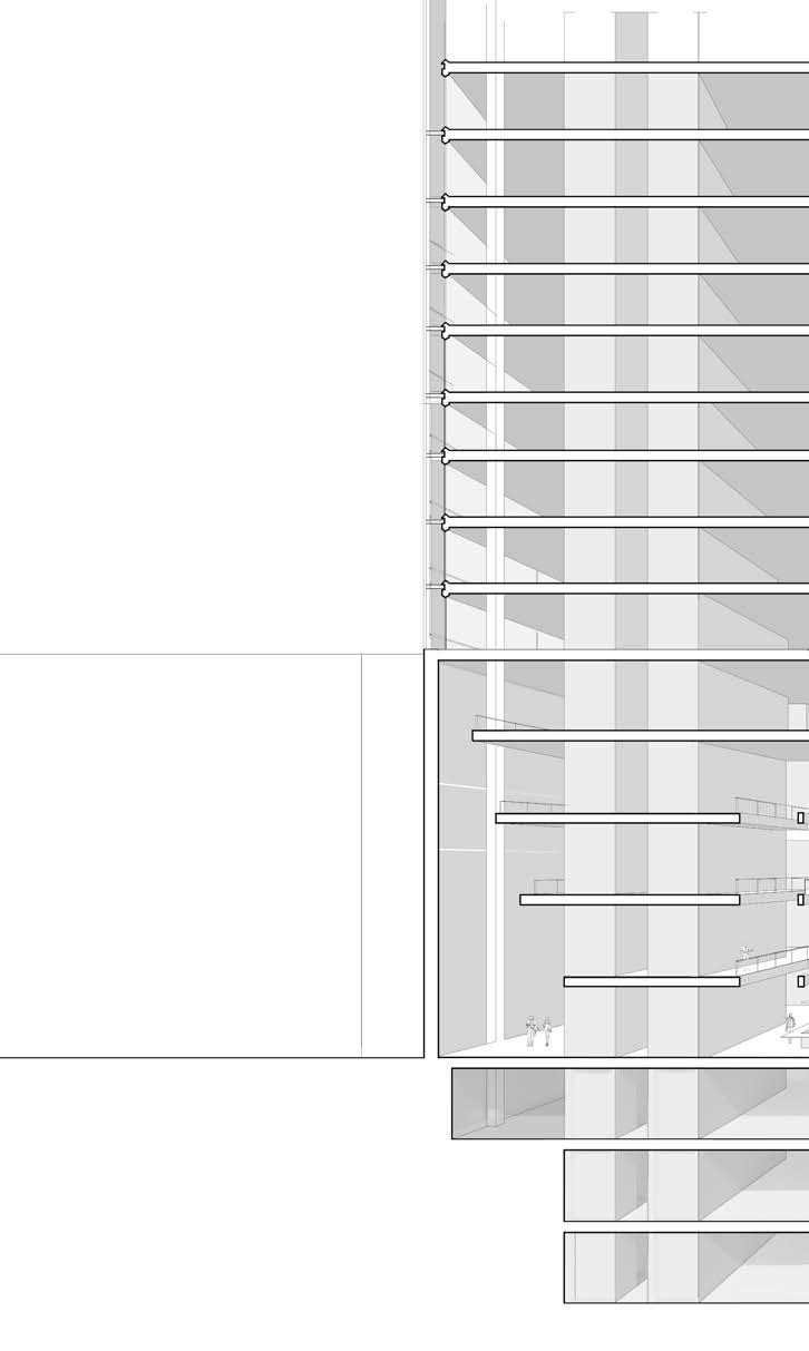 This section shows the south entrance, and how nearly the entire first floor is open. This allows for the floors above to be suspended and hang. The offsetting of the floors also adds to the tension of the building as the floors are pushing past one another.