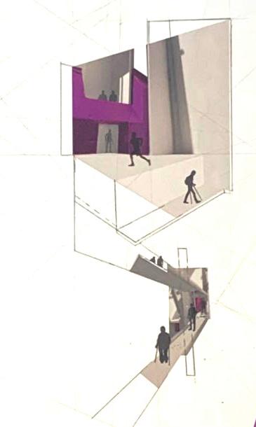 The shift in the center of the design is meant to act as a transition space between public and private spaces with rehabilitation centers towards the bottom and individual consultaion and manufacturing in the upper half.