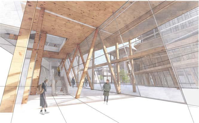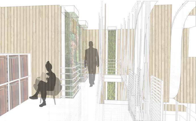 These vignette drawings were made both digitally and hand drawn, and are informitive of what activities will be taking place in each key area. Since it is meant to be a rehabilitation facility, there are areas to do physical therapy, manufacture and maintain prosthetics.