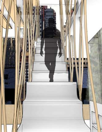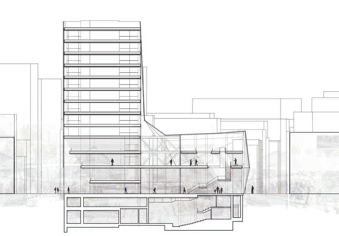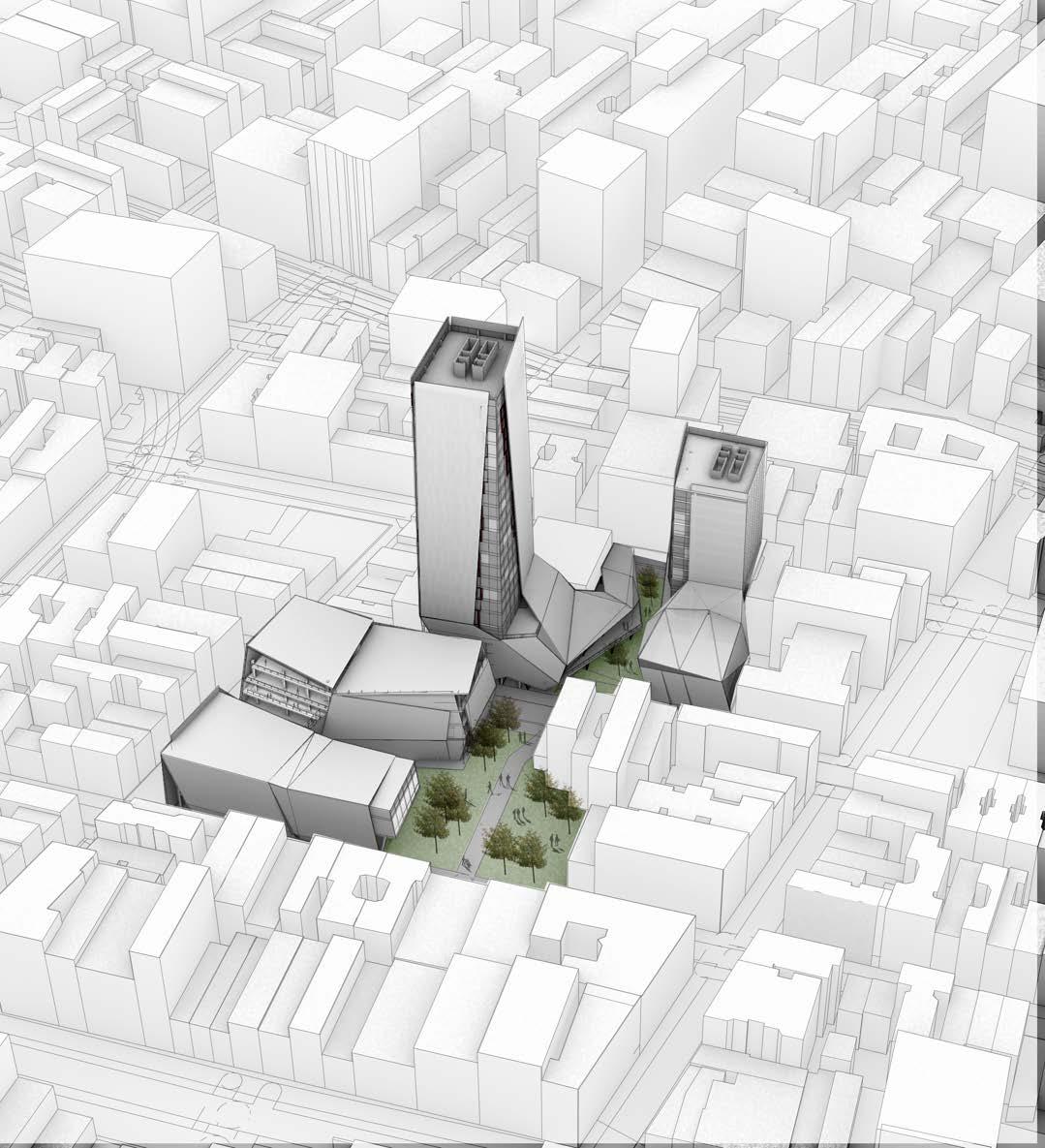The school is strategically located adjacent to the renowned Elizabeth Street Garden, creating a connection between the educational environment and the vibrant outdoor space. This opens directly into the garden, celebrating its presence as a vital community asset and integrating it into the school’s identity. The garden not only provides a serene backdrop but also serves as an inspiring extension of the school, encouraging outdoor learning and interaction with nature. The school’s layout is designed to support a range of academic and cultural activities. The east wing houses a large, performing arts auditorium, which serves as a venue for school productions, concerts, and community events. The remainder of the building is dedicated to classrooms and study spaces, each designed to create an optimal learning environment. The overall design prioritizes functionality and connectivity, creating a balanced educational setting that integrates with the surrounding urban and natural context.