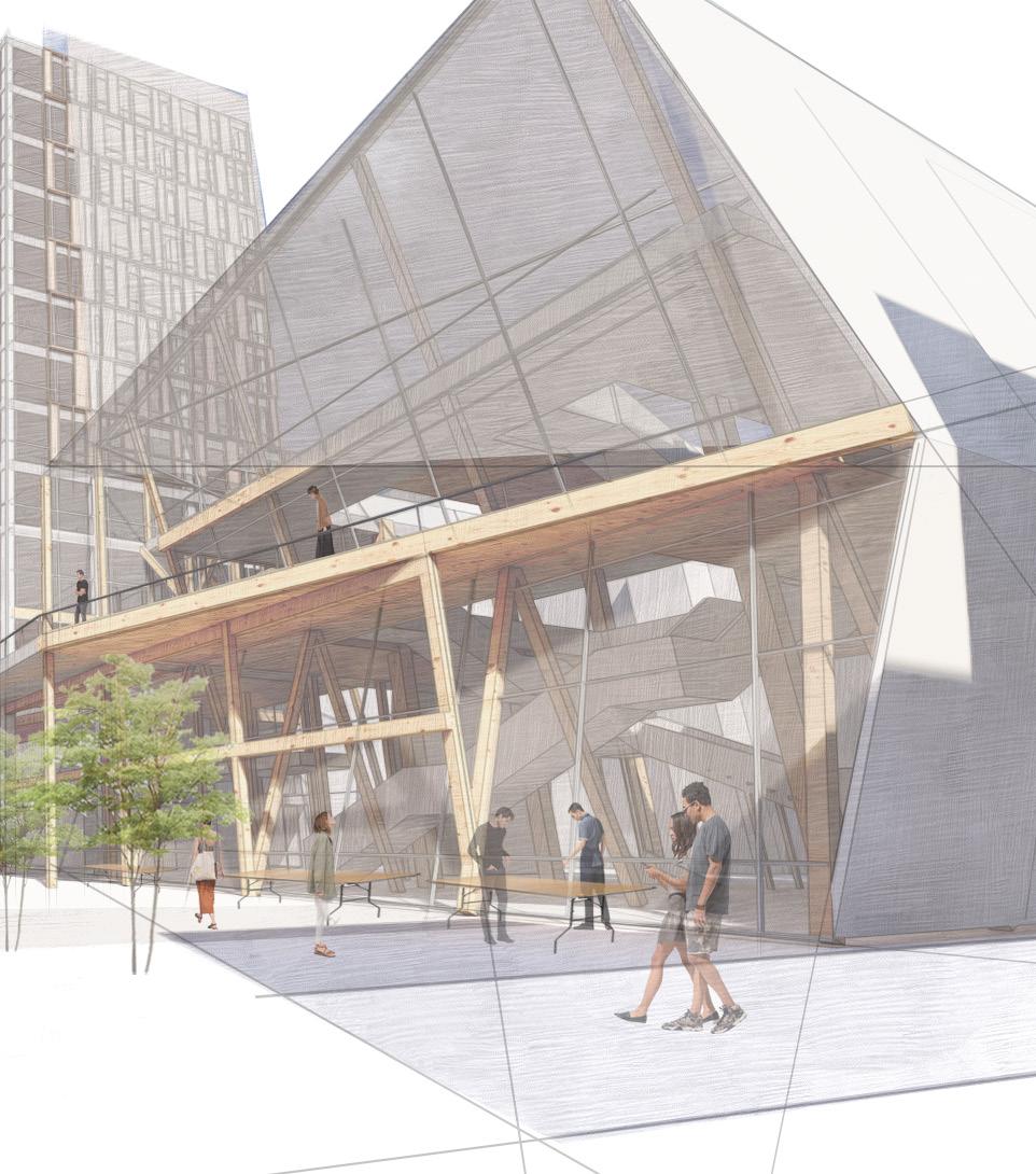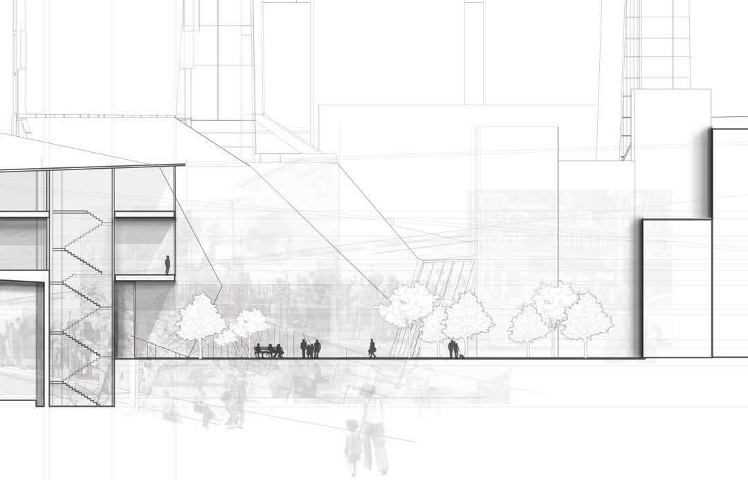 NOLITA, NYC has been digressing from its original cultural idenitity, as it was founded as an outside neighborhood to Little Italy and had a strong sense of connectivity between residents. Our proposal explores the implications and experiences of a central market, acting as a datum for a surrounding art school and a beacon of local commerce. We hope that this market celebrates the art and work of this neighborhood and school, yet invites surrounding visitors to take part in the connectivity of NOLITA’s residents and cultural values. Additionally, with the value of Elizabeth Street Garden in mind, we hope that the itinerary of our leveled paths is a worthy extension, yet complementary structure to this space. Overall, this market would help to connect the diverse cultural identities of this reshaped community.