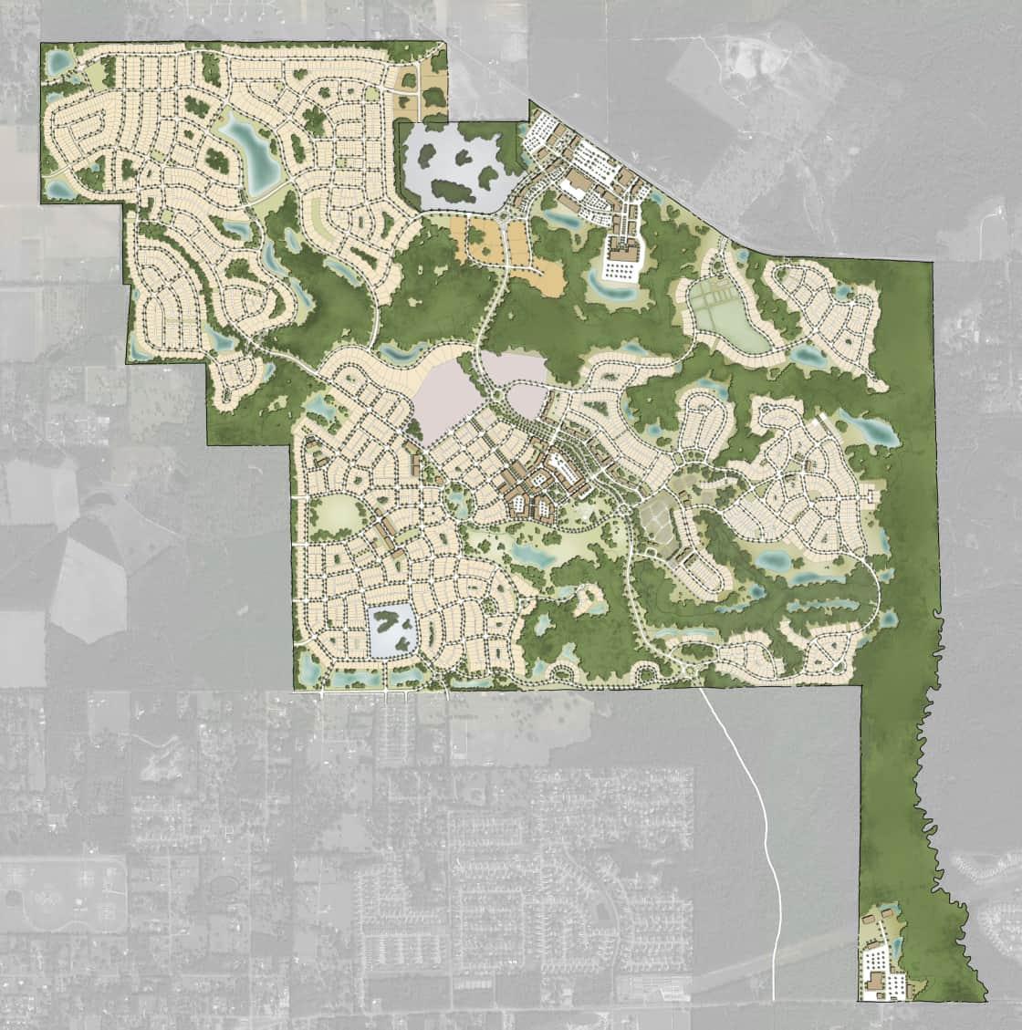 Jubilee all started in the early 2000’s, after coming to an abrupt halt in 2008; recent years have brought this project back to life. The 2,700+ acre community has everything a town could offer, including two schools, shopping centers, medical facilities, equestrian center, farm, single-family and multi-family housing and much more. This masterplan was rendered using a combination of Photoshop and procreate. Made in collaboration with Bob Smith of Smith Planning Group.