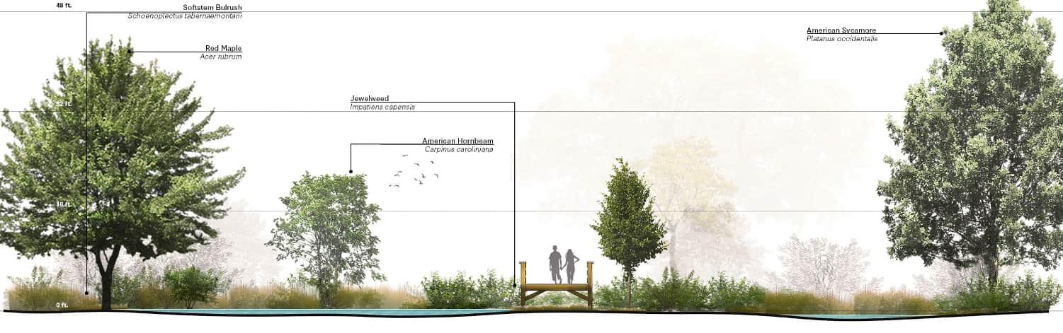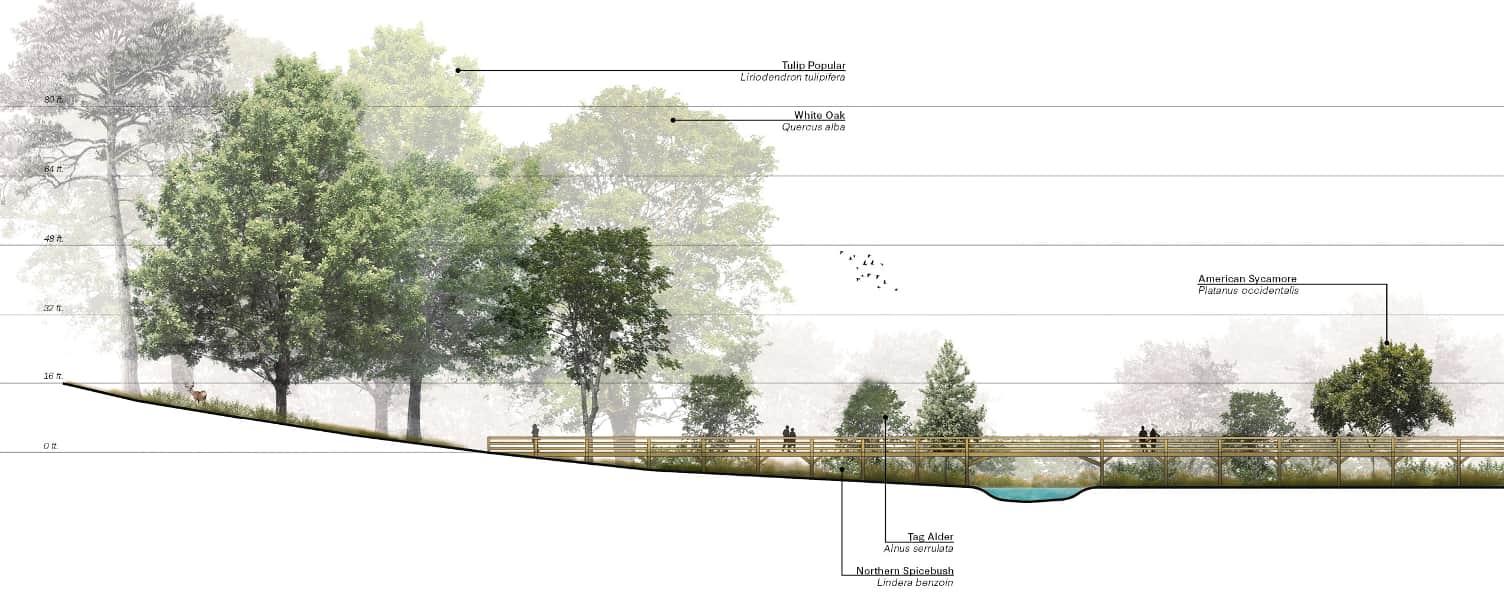 Such a large-scale project required many different exhibits. With the help of GIS data, wetlands, flood zones and different ecosystem regions were outlined, helping to assist in the overall design.