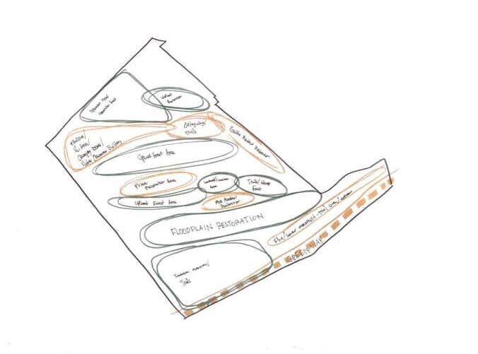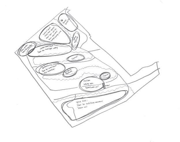 Quick sketch of areas on the site and their intended uses with an emphasis on areas suitable for development.