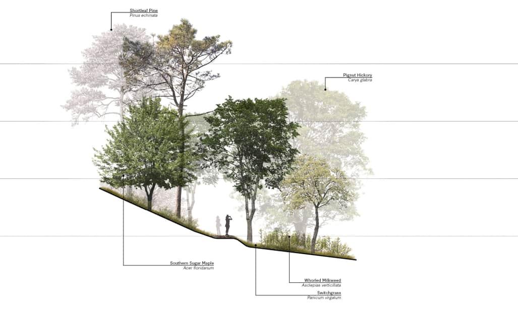 This project had many challenges, the main one was time. We were presented with this project in late January with the intent on beginning construction in May. This project features many custom details that were used in the construction documents, like the pedestrian bridge detail and arched culvert for the stream crossing. Working alongside some of my teammates, this project was approved by the city and began construction just in time. Designed in collaboration with Mick Kittle and Joseph Bates of Smith Planning Group.