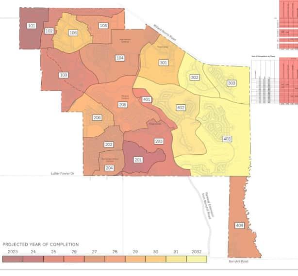 This enlargement was used to help display how traffic is intended to flow in and out of one of the southern entrances of the site.