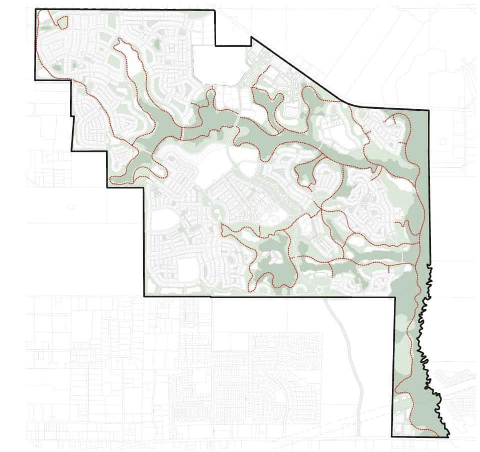 Emphasis on areas suitable for recreation amenities, such as pavilions, trails, play areas.