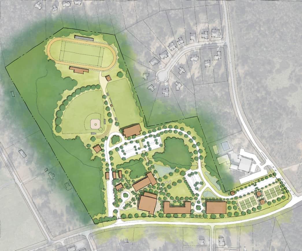 This master plan was designed to provide the staff and students of Westminster with an improved road design to help them alleviate traffic and congestion within the school grounds. Along with this new road design came many other aspects of the project, including an improved parking lot, entrance road, detention ponds, tree management and planting plan, gatehouse, pedestrian bridge crossing, tennis courts and bus turnaround.