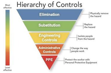 According to OSHA’s Hierarchy of Controls, PPE is less effective than elimination substitution engineering controls and administrative controls.