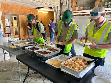 Huntsville Branch team members line up for food prepared by Carlos Soto at the Q1 Show Up For Safety event