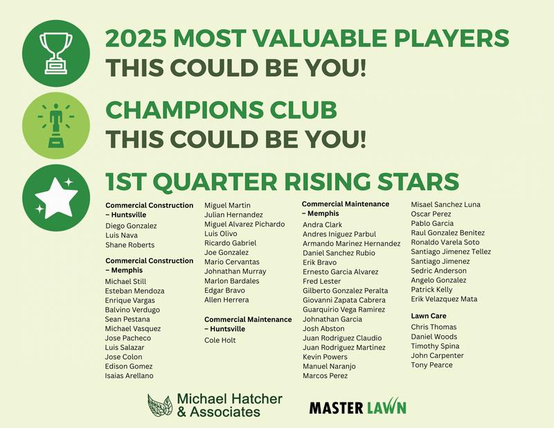 As we wrap up the second quarter, it’s important to acknowledge the hard work happening across Michael Hatcher & Associates From the offices to the jobsites, this Team continues to show up with focus and follow-through, even as we work around excessive rain, extreme heat, and the normal ups and downs of the growing season