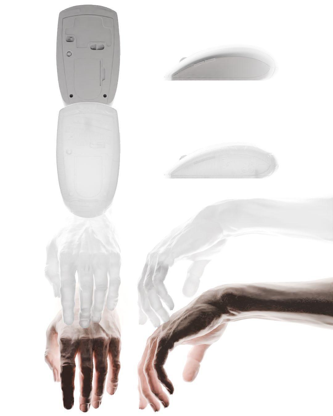 It is optimized for navigating within a flattened, two-dimensional space. Although the interaction occurs on a plane, it embodies modern interaction principles tailored to these constraints, establishing an organic connection between humans and computers. In this role, it acts as an intermediaryƆ allowing humans to integrate with the objectƆ and essentially forms a new kind of bodily structure.