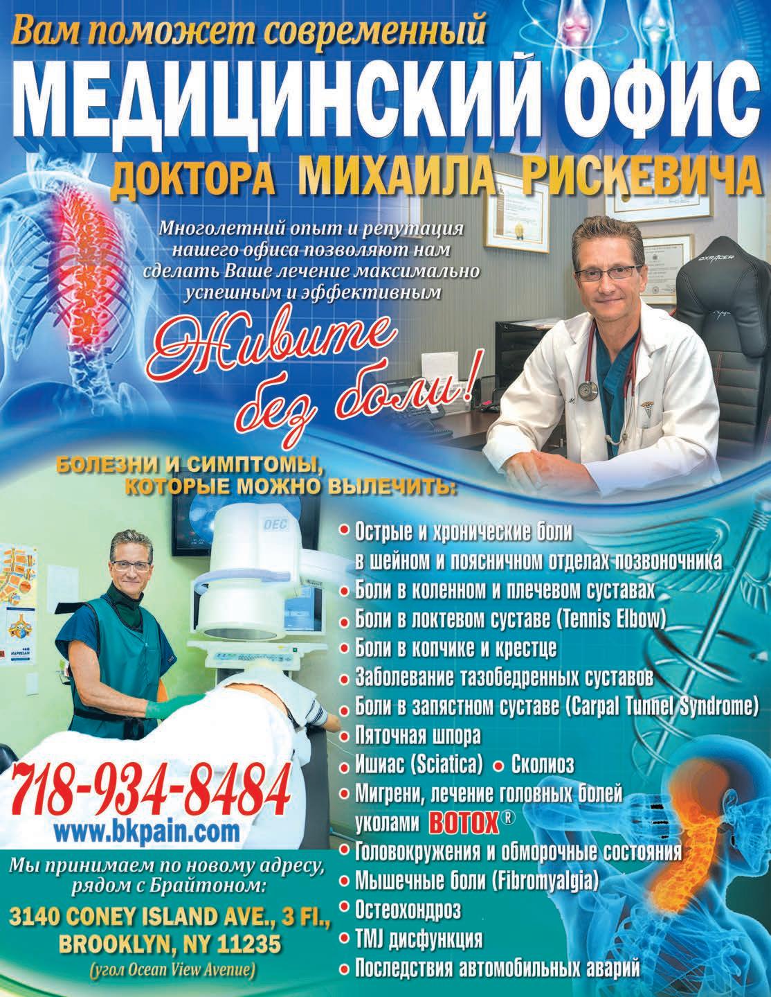 СУПЕРCOВРЕМЕННЫЙ ОФИС, ОБОРУДОВАННЫЙ НОВЕЙШЕЙ ДИАГНОСТИЧЕСКОЙ И ЛЕЧЕБНОЙ АППАРАТУРОЙ 369 Lexington ave., 19th Fl, New York, NY 10017 626 Sheepshead Bay Rd, 5th Fl, Ste 520, Brooklyn, NY 11224 929-363-0303 В НАШЕМ ОФИСЕ ПРИНИМАЮТ ВРАЧИ ВЫСШЕЙ КВАЛИФИКАЦИИ ПРИНИМАЕМ ВСЕ ОСНОВНЫЕ ВИДЫ CТРАХОВОК, MEDICARE/MEDICAID ПЕРСОНАЛЬНЫЙ ПОДХОД К КАЖДОМУ ПАЦИЕНТУ! www.UniqueMed.com • Ask@UniqueMed.com Звоните!
