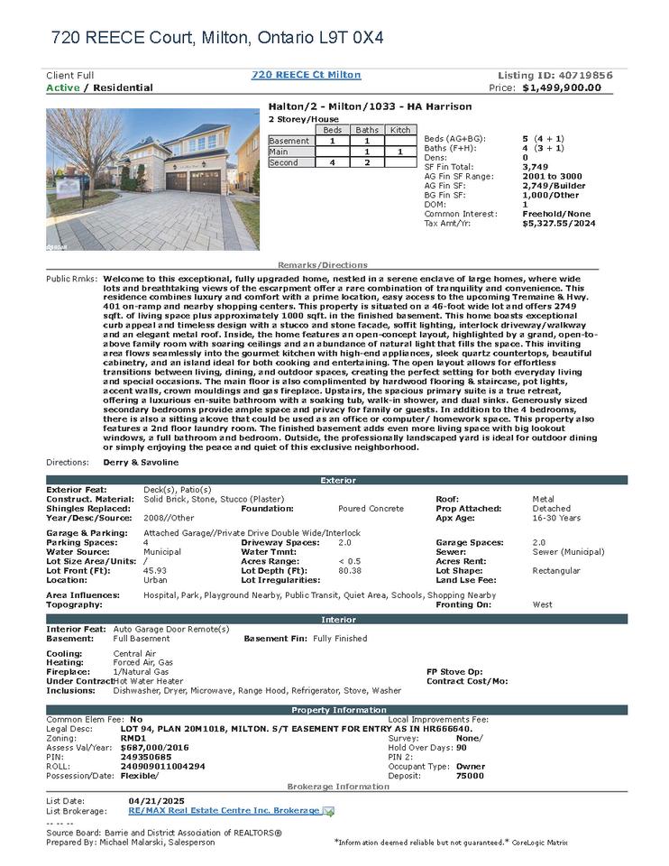 Welcome to this exceptional, fully upgraded home, nestled in a serene enclave of large homes, where wide lots and breathtaking views of the escarpment offer a rare combination of tranquility and convenience. This residence combines luxury and comfort with a prime location, easy access to the upcoming Tremaine & Hwy. 401 on-ramp and nearby shopping centers. This property is situated on a 46foot wide lot and offers 2749 square feet of living space plus approximately 1000 square feet in the finished basement.