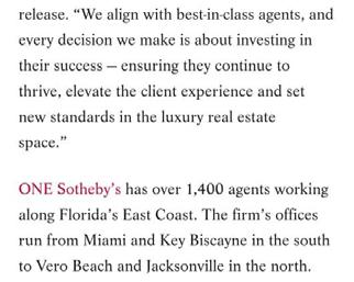 Since our inception in 2008, ONE Sotheby’s International Realty has built a notable presence along Florida’s East Coast with 30 offices spanning from Miami to Amelia Island. Our dedicated real estate professionals are experts in their local markets, backed by a global reach that transcends countries and cities like no other brokerage. With a reputation of passion, trust and unsurpassed service, ONE Sotheby’s International Realty is dedicated to giving extraordinary lives a home to thrive.