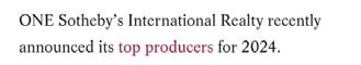 TOP PRODUCER FOR ONE SOTHEBY’S INTERNATIONAL REALTY