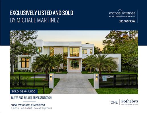 Michael Martinez, Senior Vice President at ONE Sotheby’s International Realty, is renowned for his unparalleled achievements in the real estate industry, holding the distinction of Top Producer for 12 consecutive years, with career gross sales exceeding $1.7 billion. His exceptional performance has consistently placed him at the summit of success within ONE Sotheby’s International Realty, earning him the #1 Top Producer accolade in 2020, 2022, 2023, and 2024. His reputation as a leading agent extends throughout Coral Gables, Coconut Grove, and Pinecrest, where he has achieved the highest total sales volume or highest GCI year after year since 2018