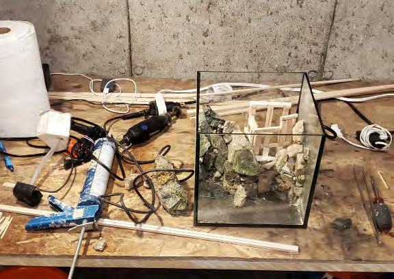 - 3-gallon paludarium with an experimental waterfall and lava rock bio-filtration system